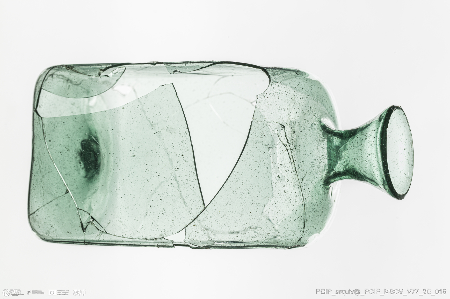 Matéria/Técnica: Vidro; Cronologia: Século XVII; Autoria: Desconhecida; Dimensões: Diâmetro bordo: 30mm; Altura: 120mm.