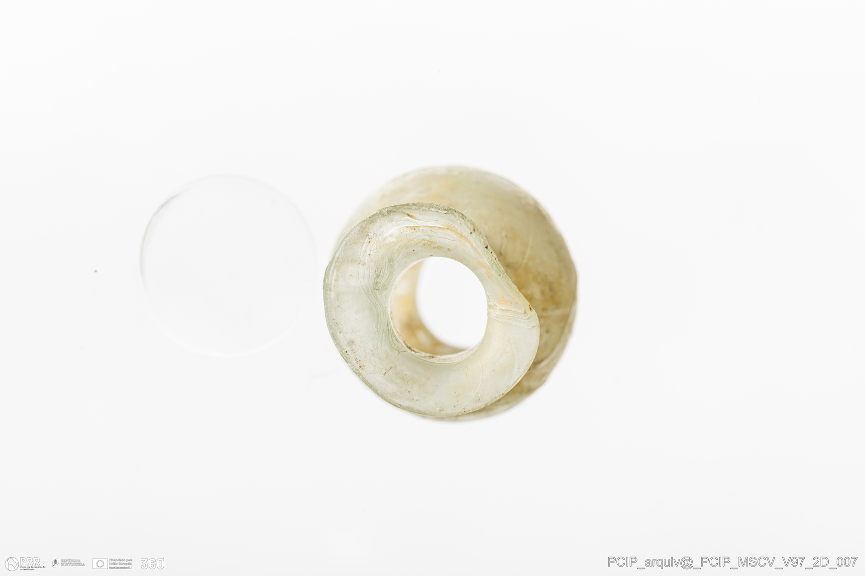 Matéria/Técnica: Vidro; Cronologia: Século XVII; Autoria: Desconhecida; Dimensões: Diâmetro do bordo: 23mm.