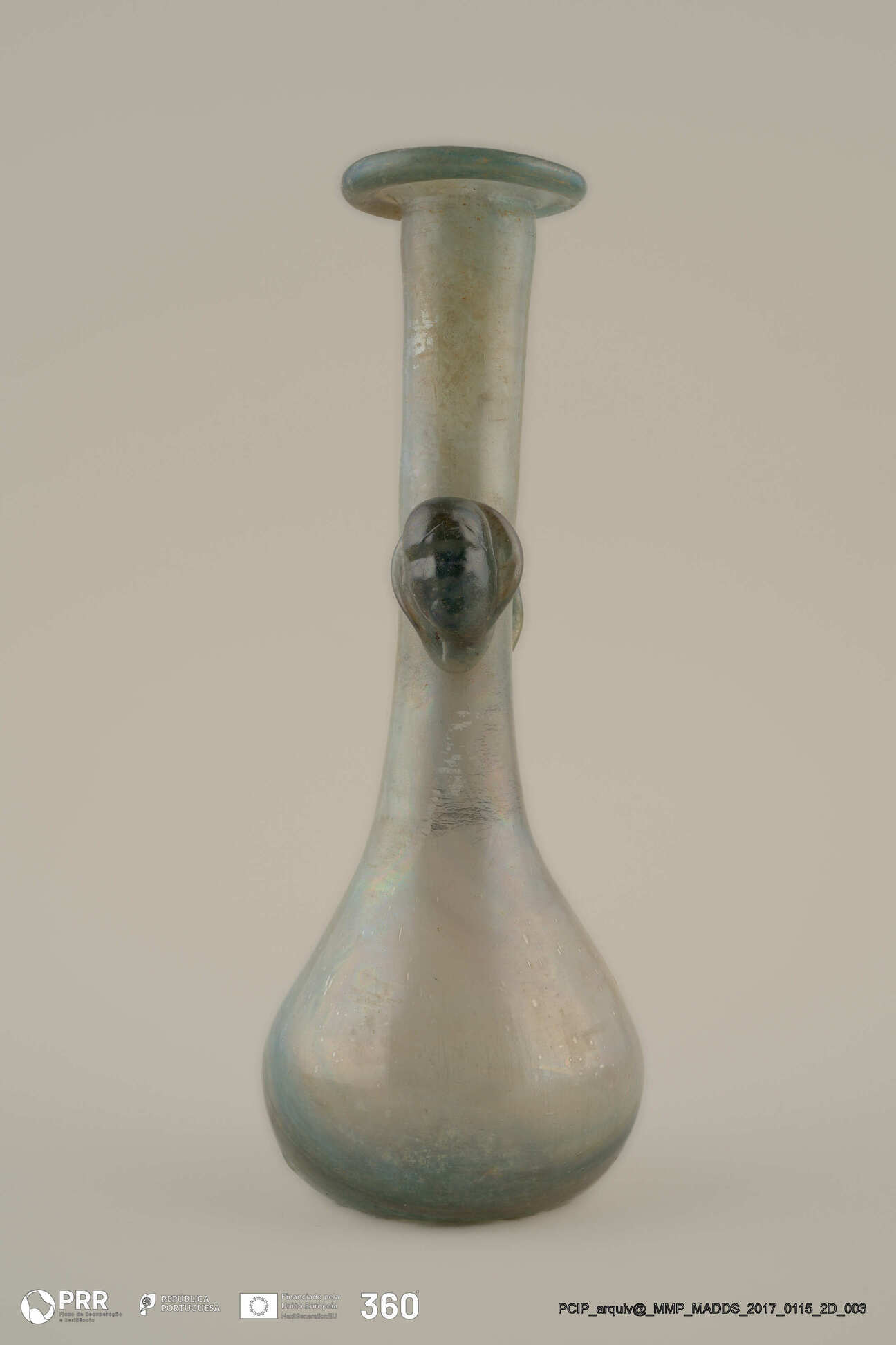 Matéria/Técnica: Vidro; Cronologia: Romano; Autoria: Desconhecida; Dimensões (cm): 19 x 7 x 7.