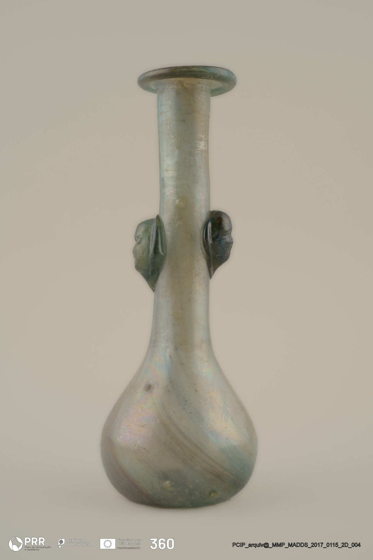 Matéria/Técnica: Vidro; Cronologia: Romano; Autoria: Desconhecida; Dimensões (cm): 19 x 7 x 7.