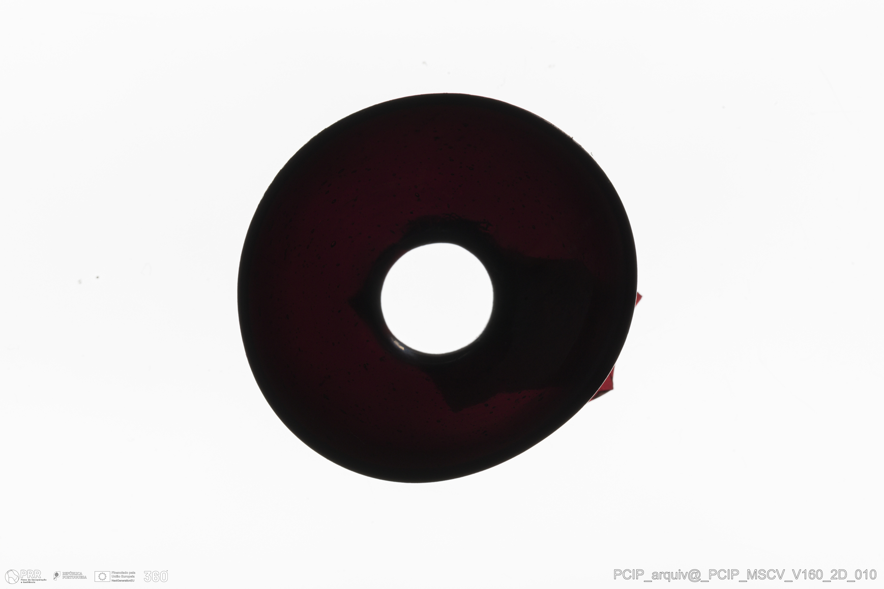 Matéria/Técnica: Vidro; Cronologia: Século XVII; Autoria: Desconhecida; Dimensões: Diâmetro Bordo: 34mm.