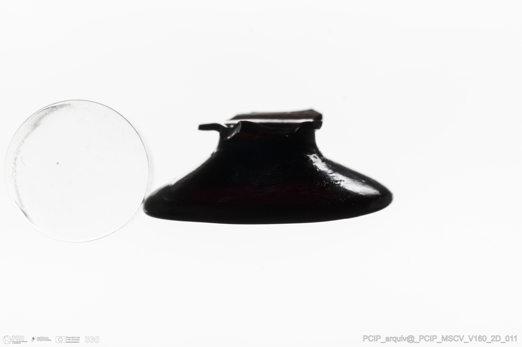 Matéria/Técnica: Vidro; Cronologia: Século XVII; Autoria: Desconhecida; Dimensões: Diâmetro Bordo: 34mm.