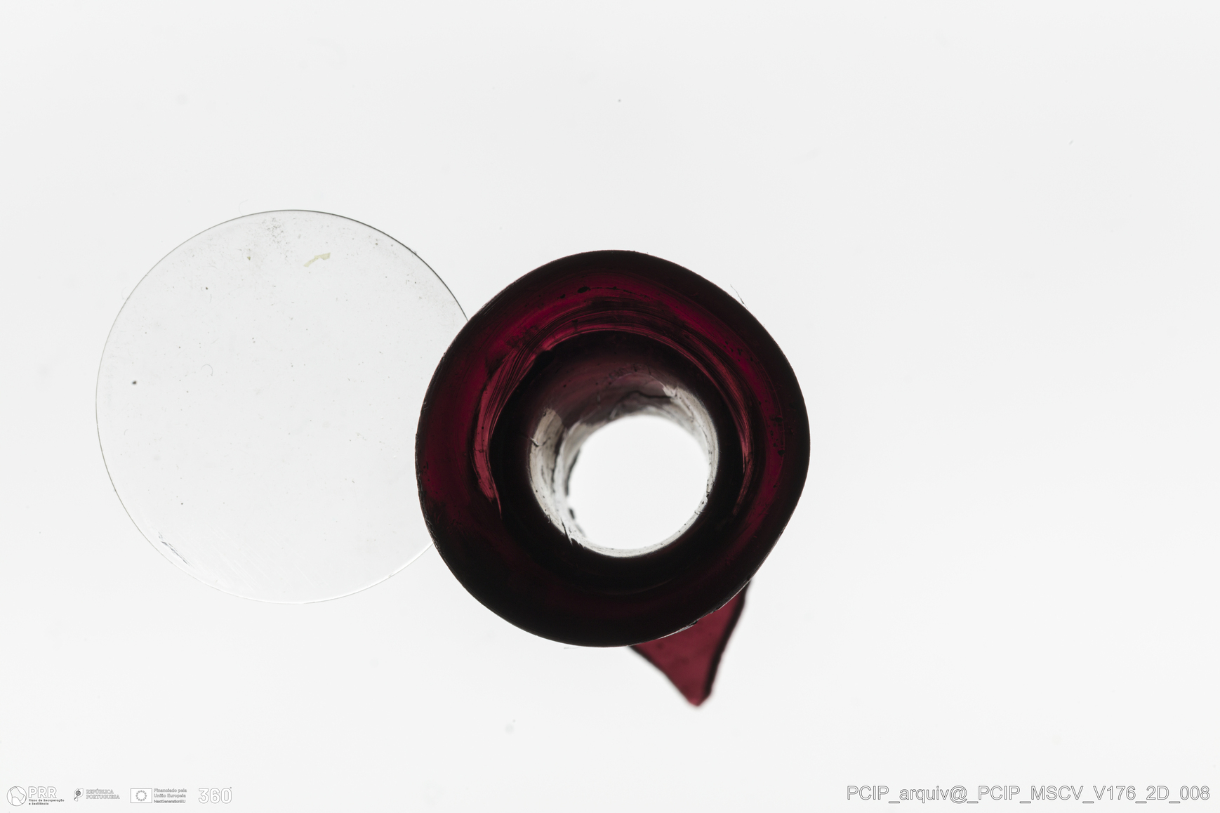 Matéria/Técnica: Vidro; Cronologia: Século XVII; Autoria: Desconhecida; Dimensões: Diâmetro bordo: 20mm.