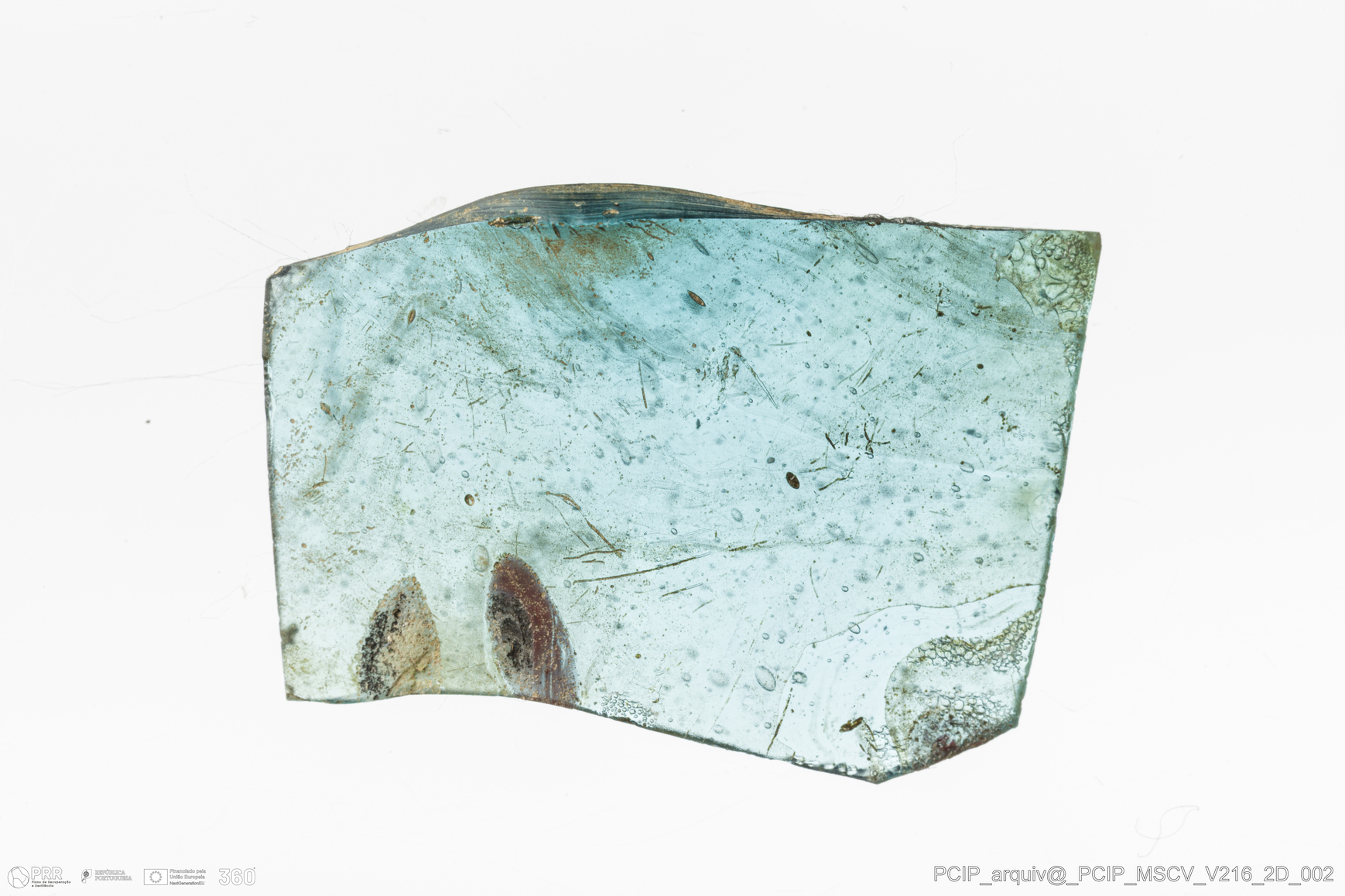 Matéria/Técnica: Vidro; Cronologia: Século XVII; Autoria: Desconhecida; Dimensões: Comprimento: 25mm; Largura: 18mm.