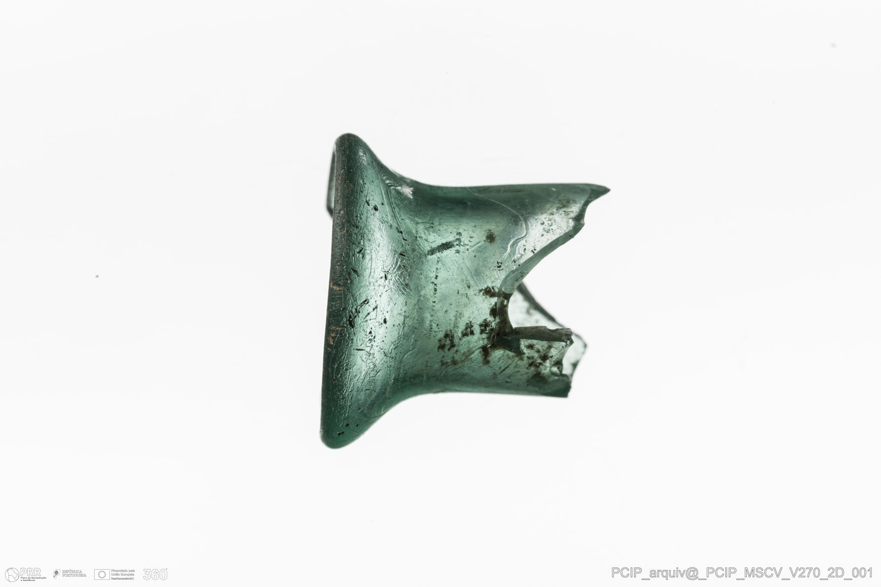 Matéria/Técnica: Vidro; Cronologia: Século XVII; Autoria: Desconhecida; Dimensões: Diâmetro bordo: 20mm.