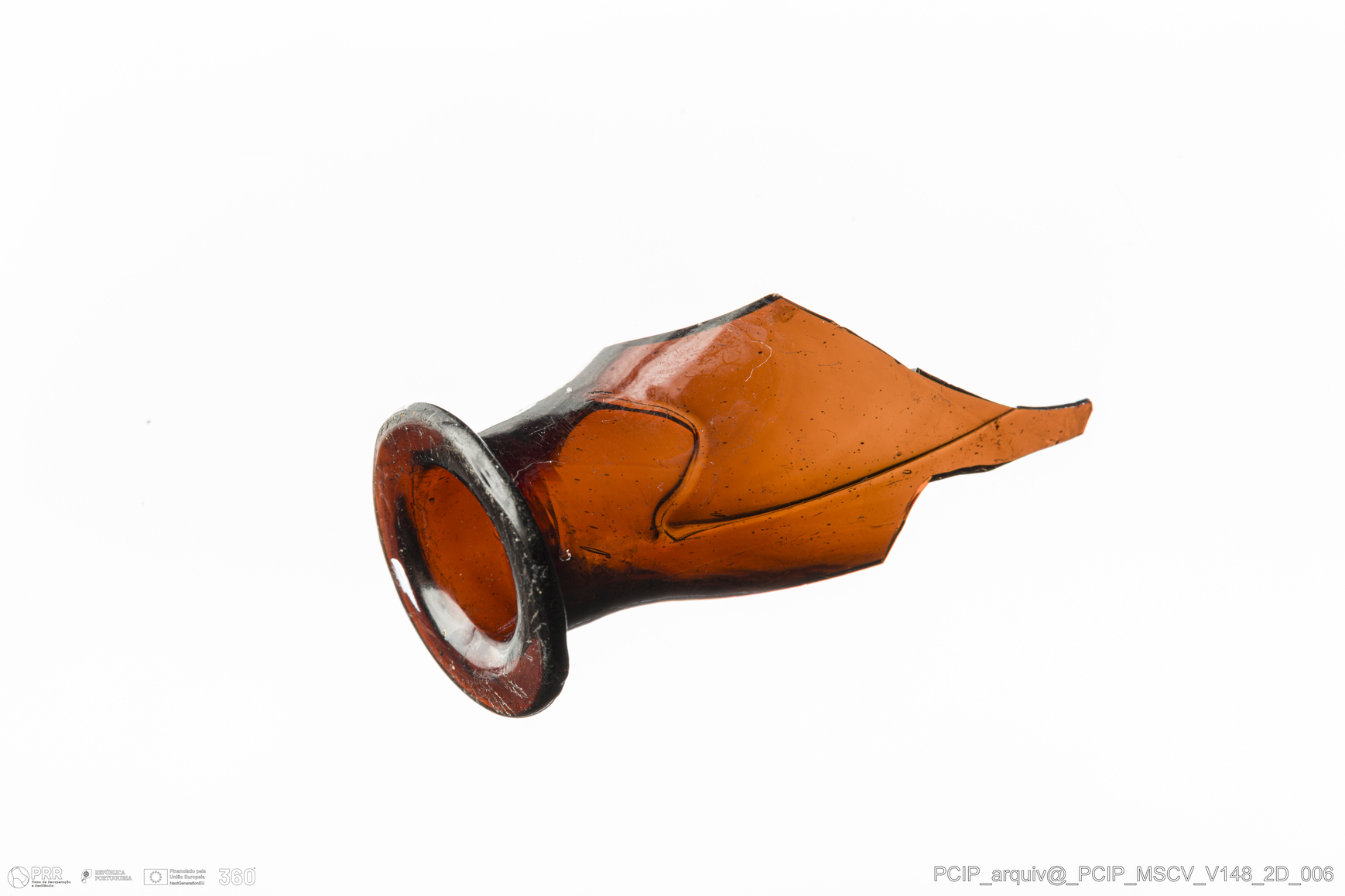 Matéria/Técnica: Vidro; Cronologia: Século XVII; Autoria: Desconhecida; Dimensões: Diâmetro Bordo: 22,5mm.