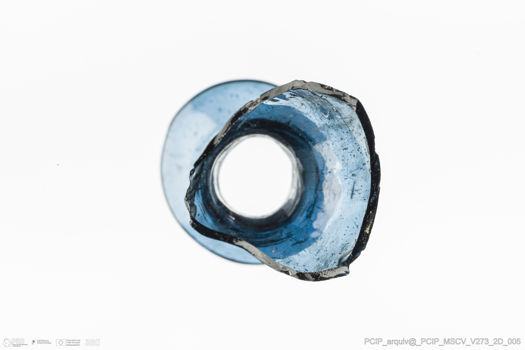 Matéria/Técnica: Vidro; Cronologia: Século XVII; Autoria: Desconhecida; Dimensões: Diâmetro bordo: 24mm.