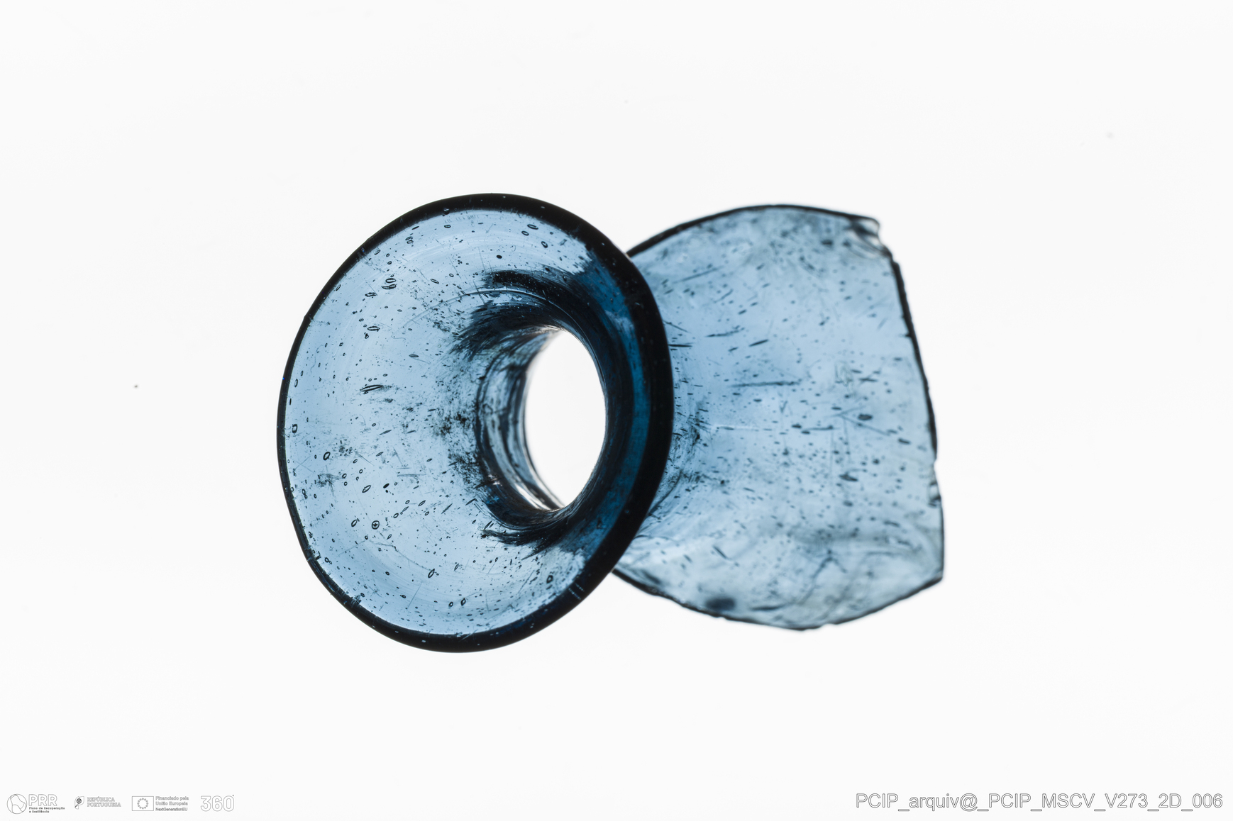 Matéria/Técnica: Vidro; Cronologia: Século XVII; Autoria: Desconhecida; Dimensões: Diâmetro bordo: 24mm.