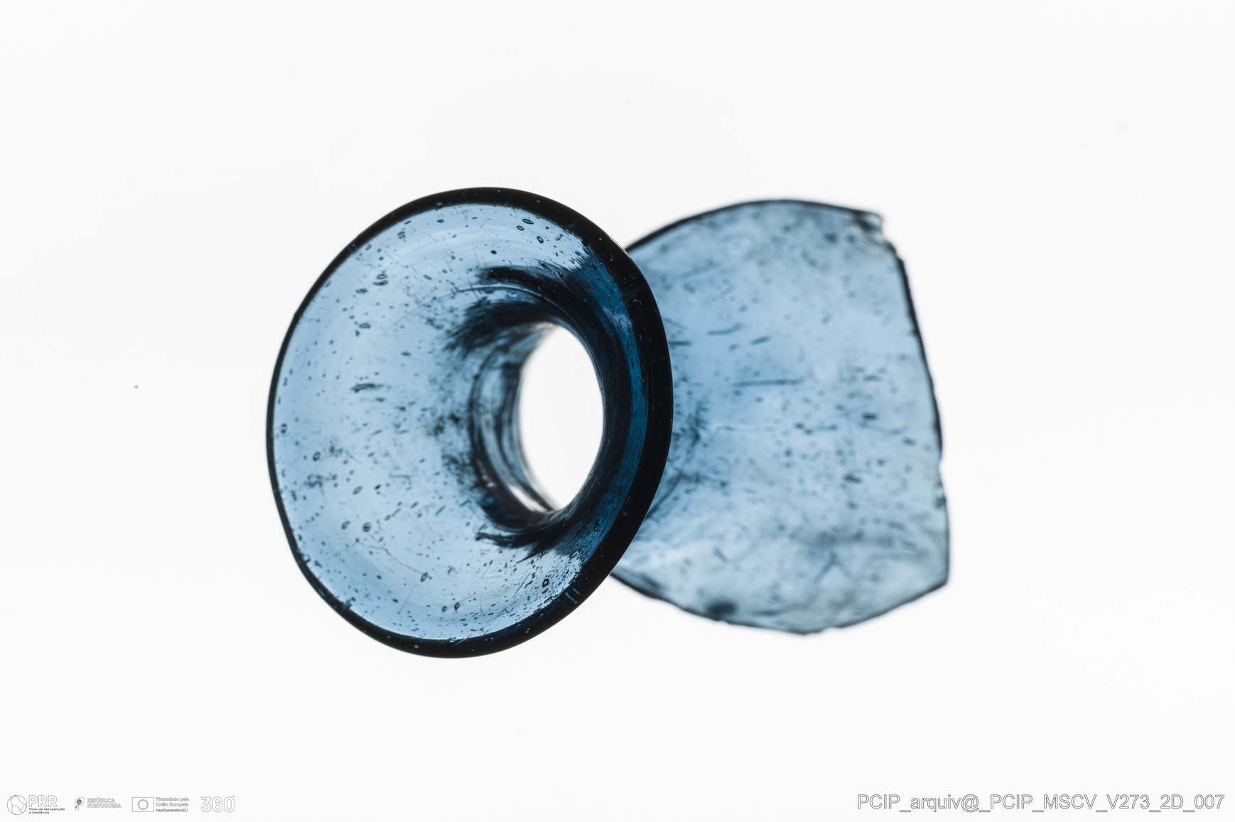Matéria/Técnica: Vidro; Cronologia: Século XVII; Autoria: Desconhecida; Dimensões: Diâmetro bordo: 24mm.