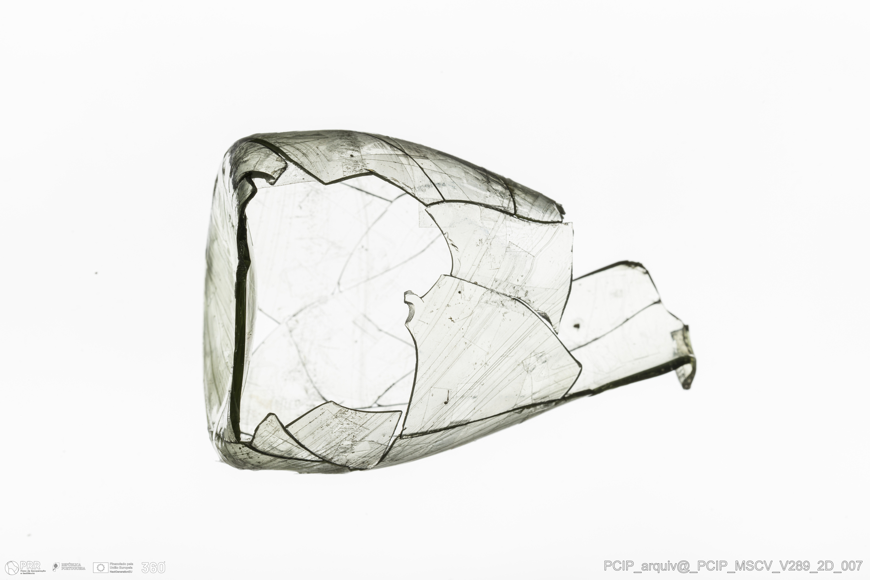 Matéria/Técnica: Vidro; Cronologia: Século XVII; Autoria: Desconhecida; Dimensões: Diâmetro bordo: 20mm, Diâmetro base: 45mm; Altura: 71mm.