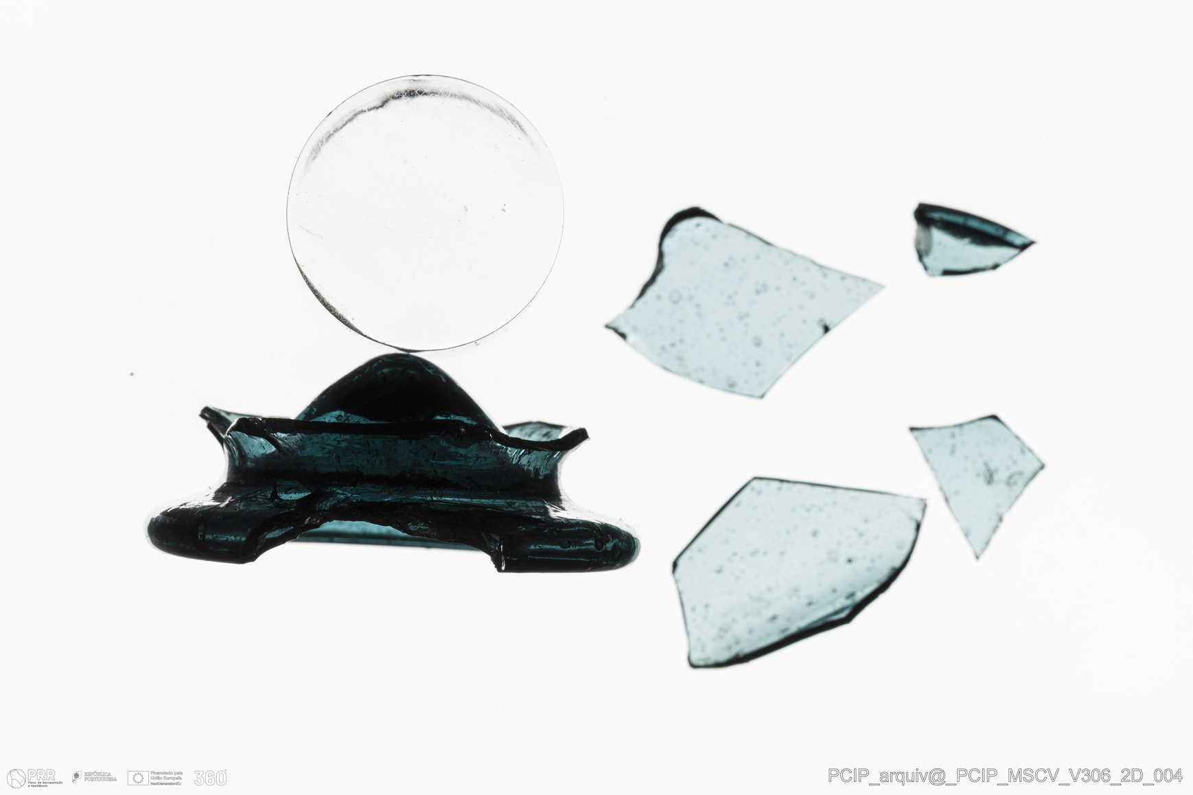 Matéria/Técnica: Vidro; Cronologia: Século XVII; Autoria: Desconhecida; Dimensões: Diâmetro base: 38mm.