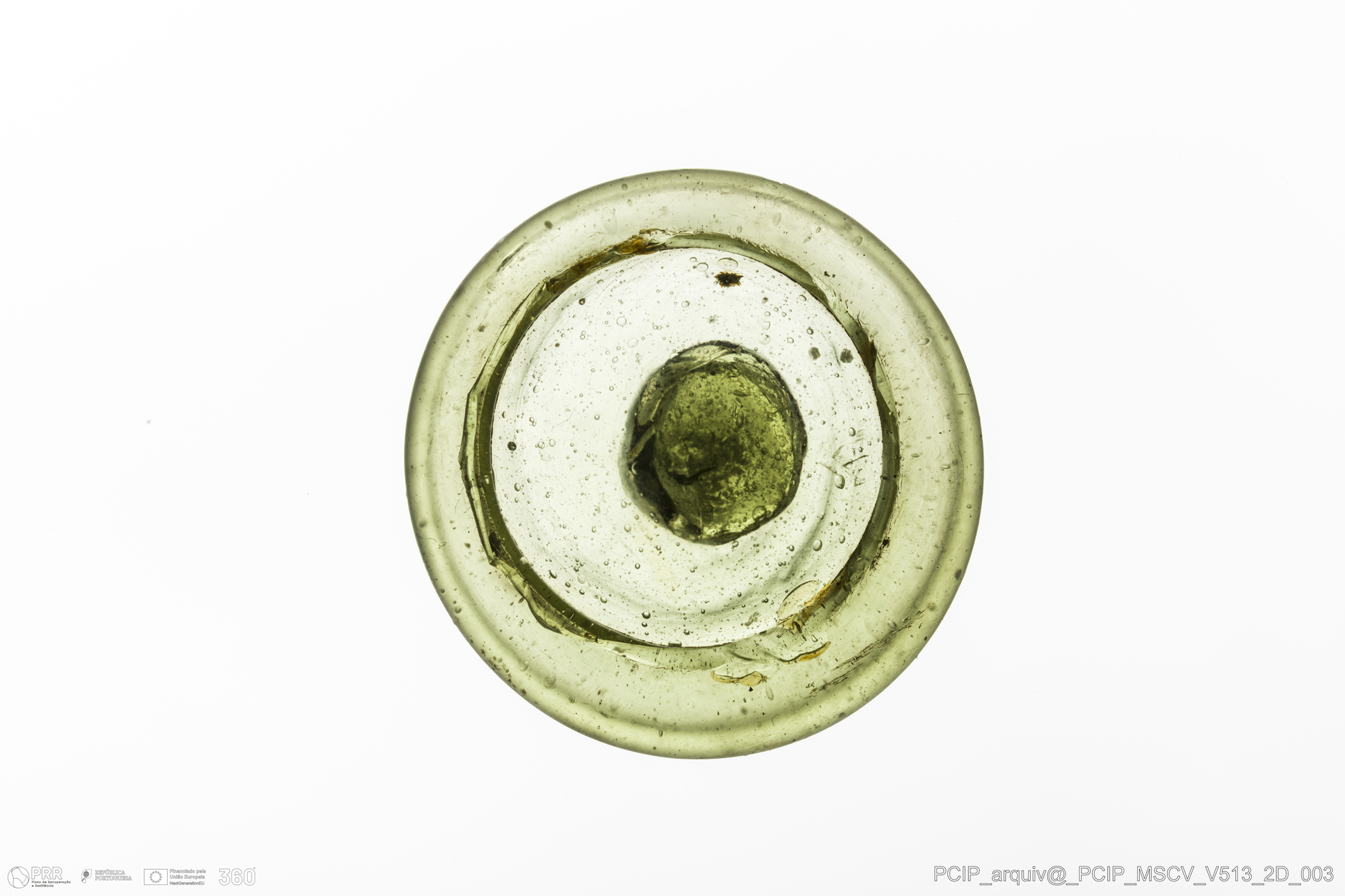 Matéria/Técnica: Vidro; Cronologia: Século XVII; Autoria: Desconhecida; Dimensões: Diâmetro Base: 44mm.