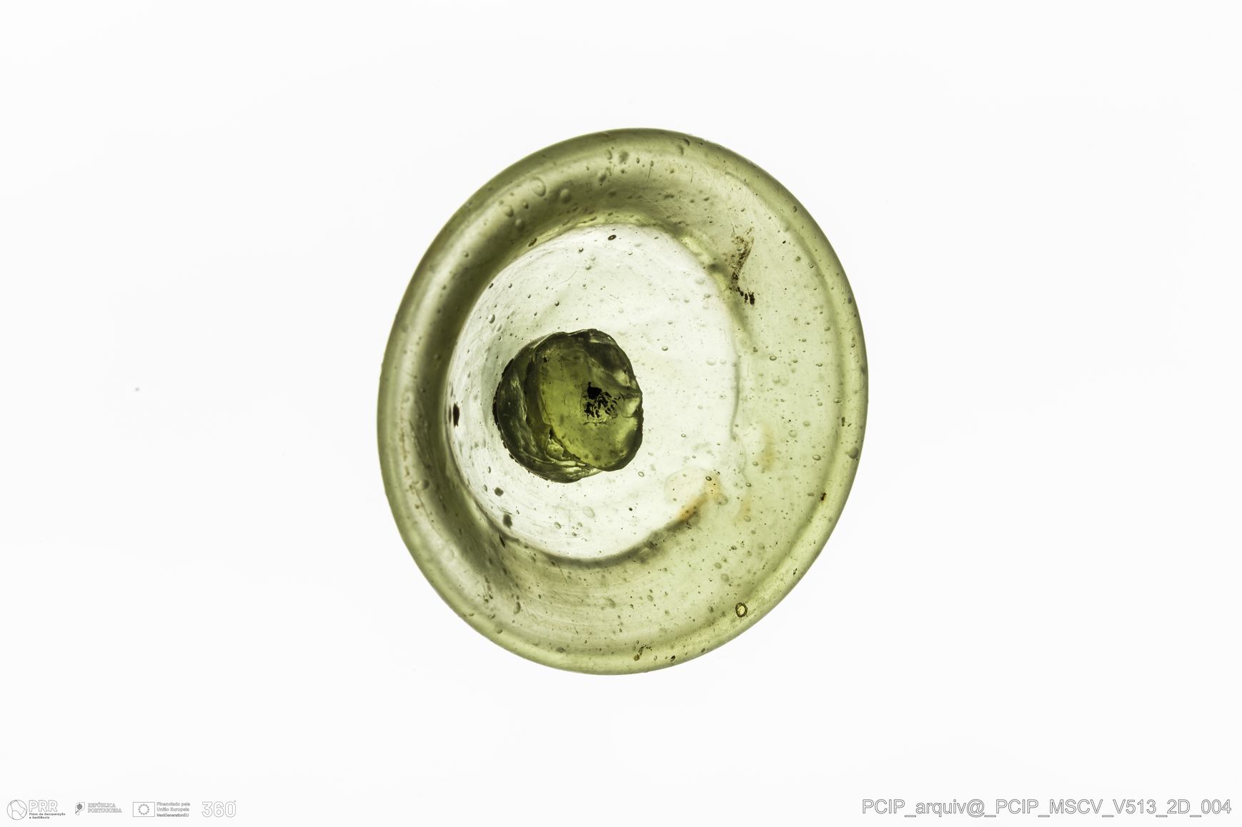 Matéria/Técnica: Vidro; Cronologia: Século XVII; Autoria: Desconhecida; Dimensões: Diâmetro Base: 44mm.