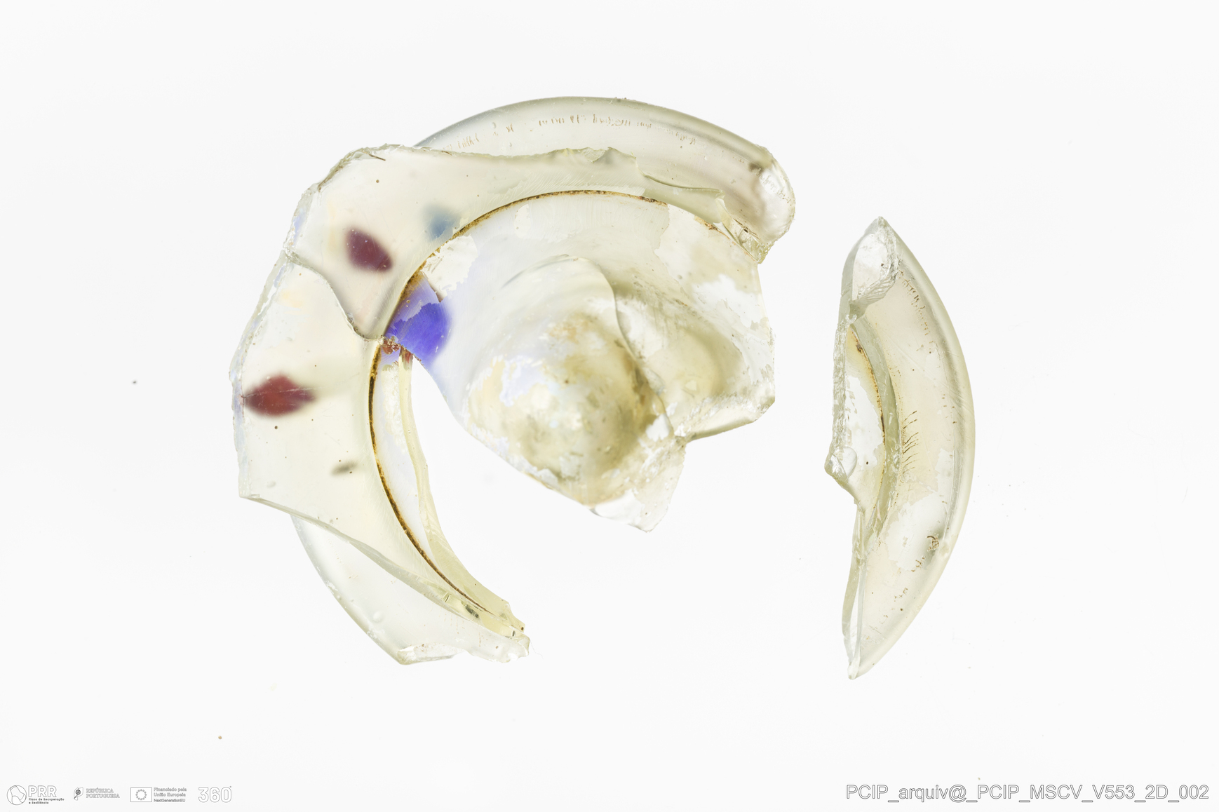 Matéria/Técnica: Vidro; Cronologia: Século XVII; Autoria: Desconhecida; Dimensões: Diâmetro: 43mm; Altura: 20mm.