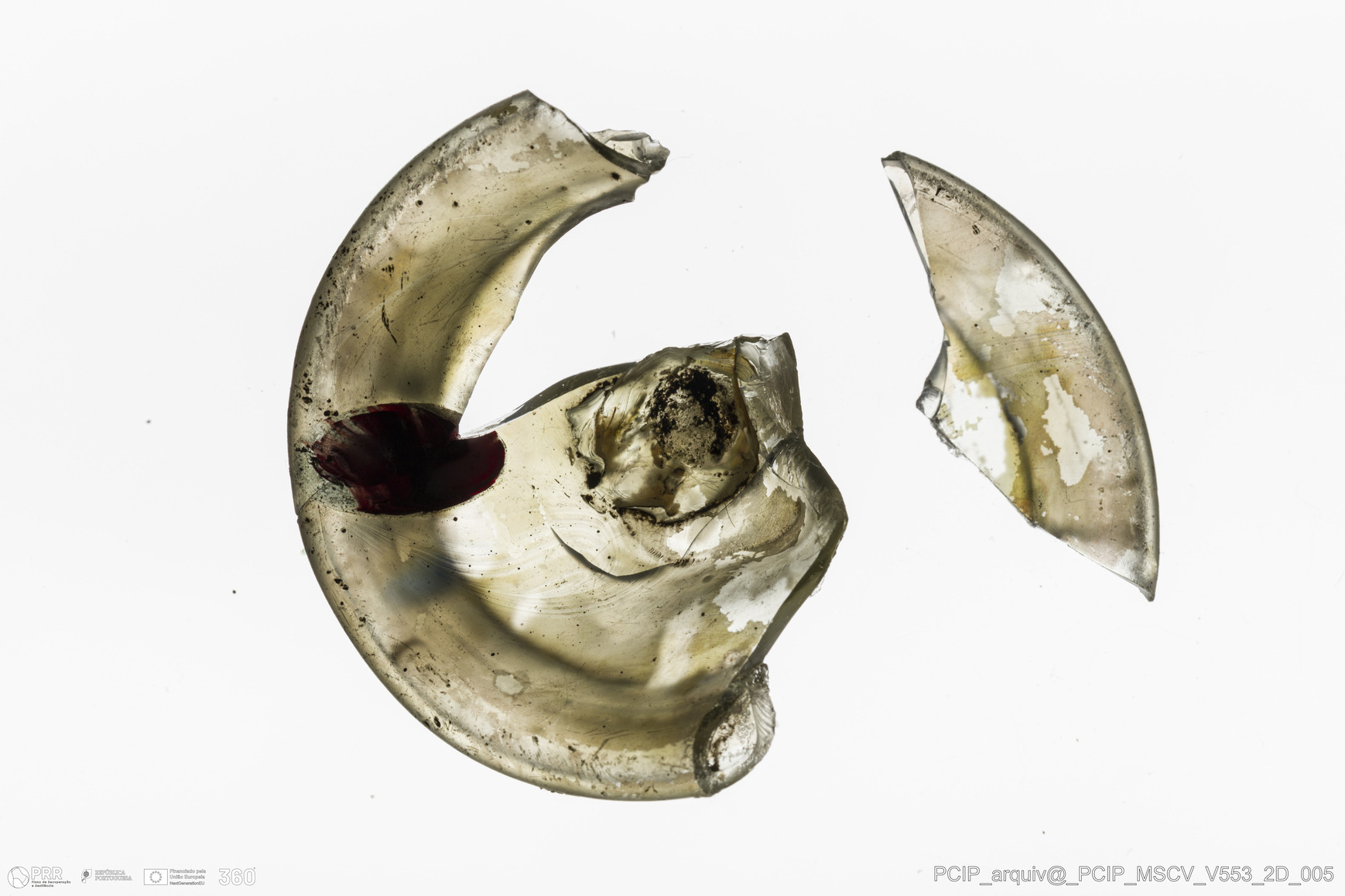 Matéria/Técnica: Vidro; Cronologia: Século XVII; Autoria: Desconhecida; Dimensões: Diâmetro: 43mm; Altura: 20mm.