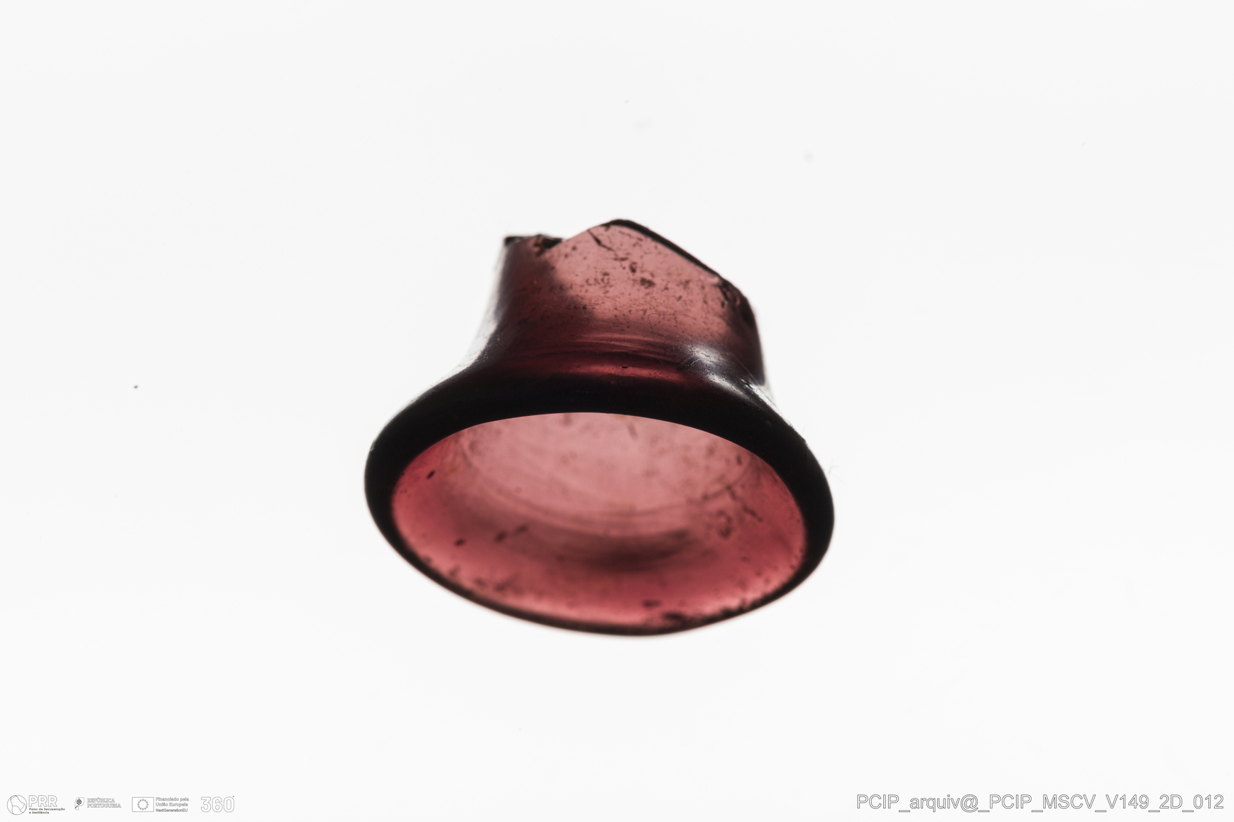 Matéria/Técnica: Vidro; Cronologia: Século XVII; Autoria: Desconhecida; Dimensões: Diâmetro Bordo: 19mm.