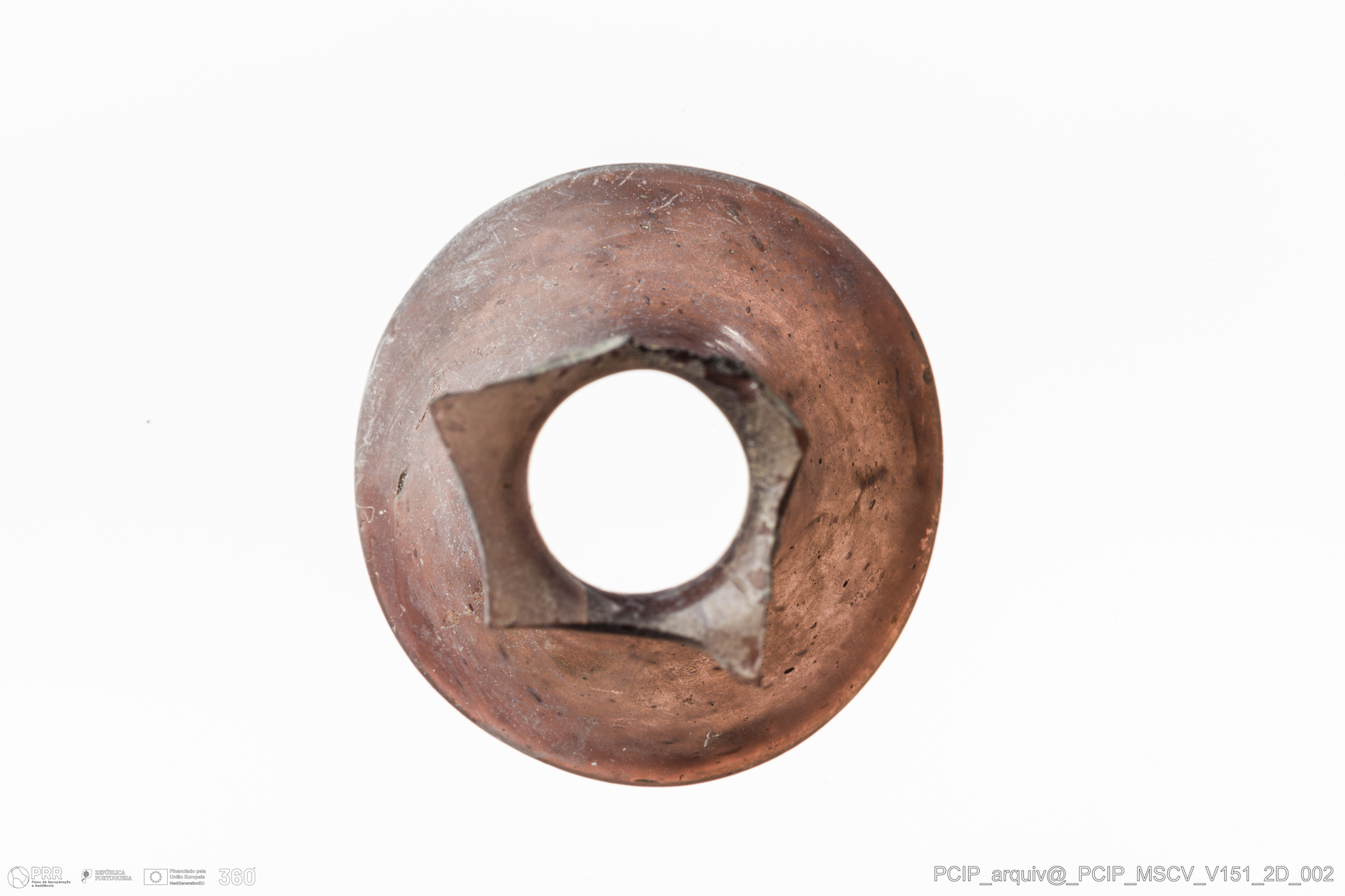 Matéria/Técnica: Vidro; Cronologia: Século XVII; Autoria: Desconhecida; Dimensões: Diâmetro Bordo: 29mm.