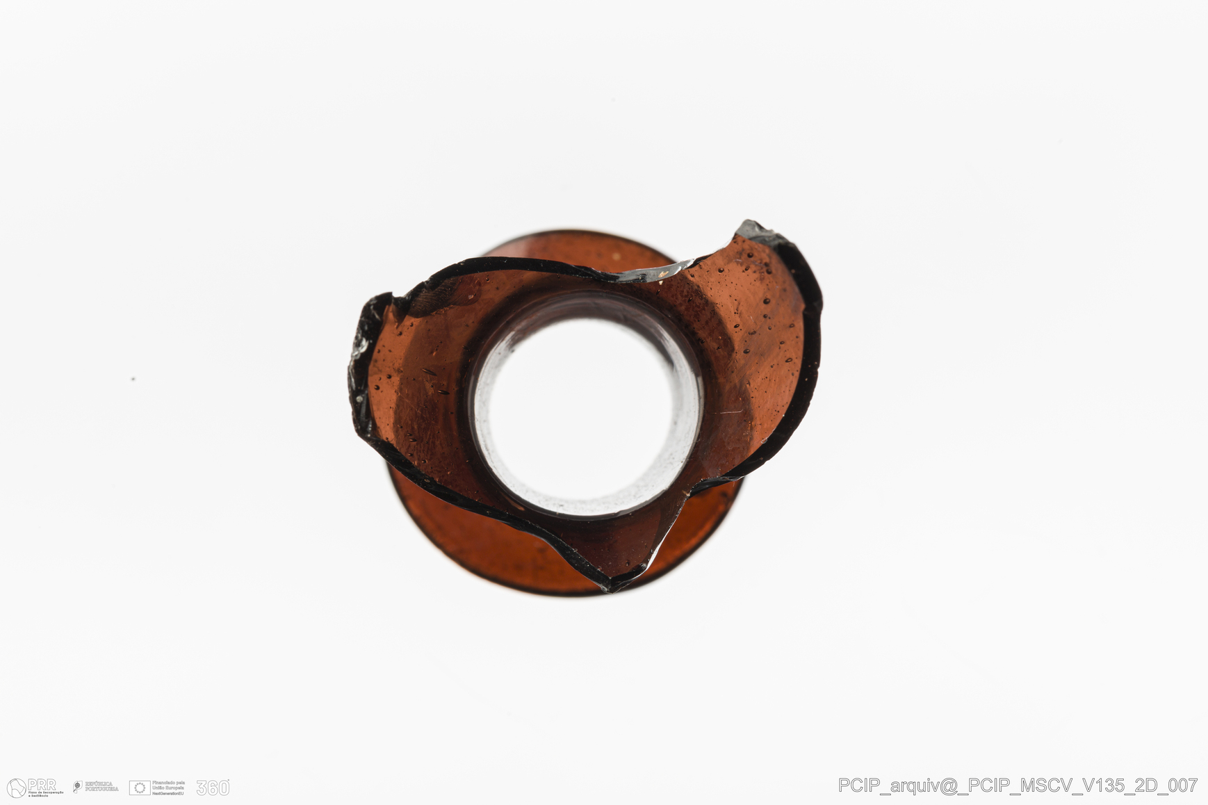 Matéria/Técnica: Vidro; Cronologia: Século XVII; Autoria: Desconhecida; Dimensões: Diâmetro Bordo: 23mm.