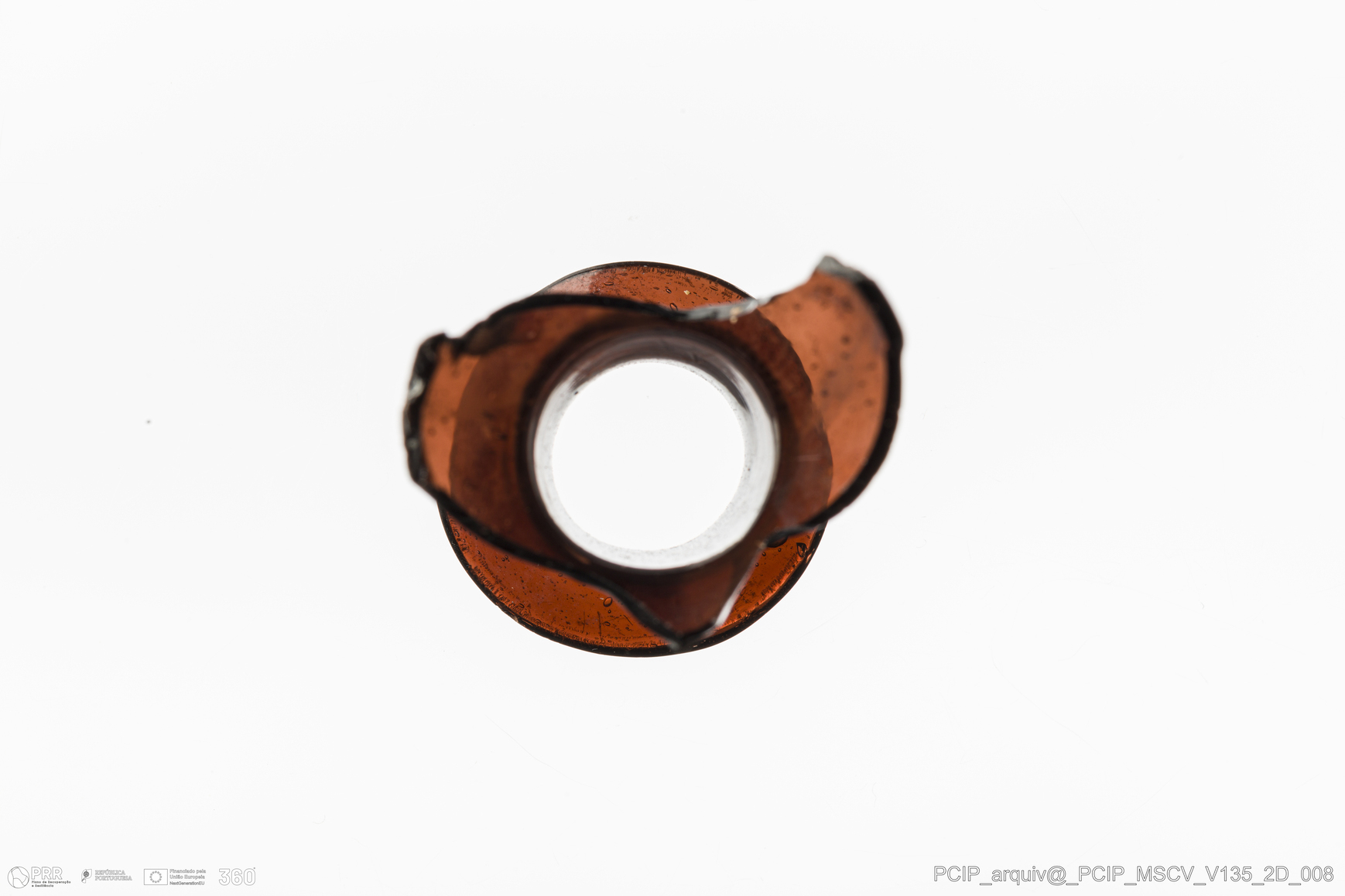 Matéria/Técnica: Vidro; Cronologia: Século XVII; Autoria: Desconhecida; Dimensões: Diâmetro Bordo: 23mm.