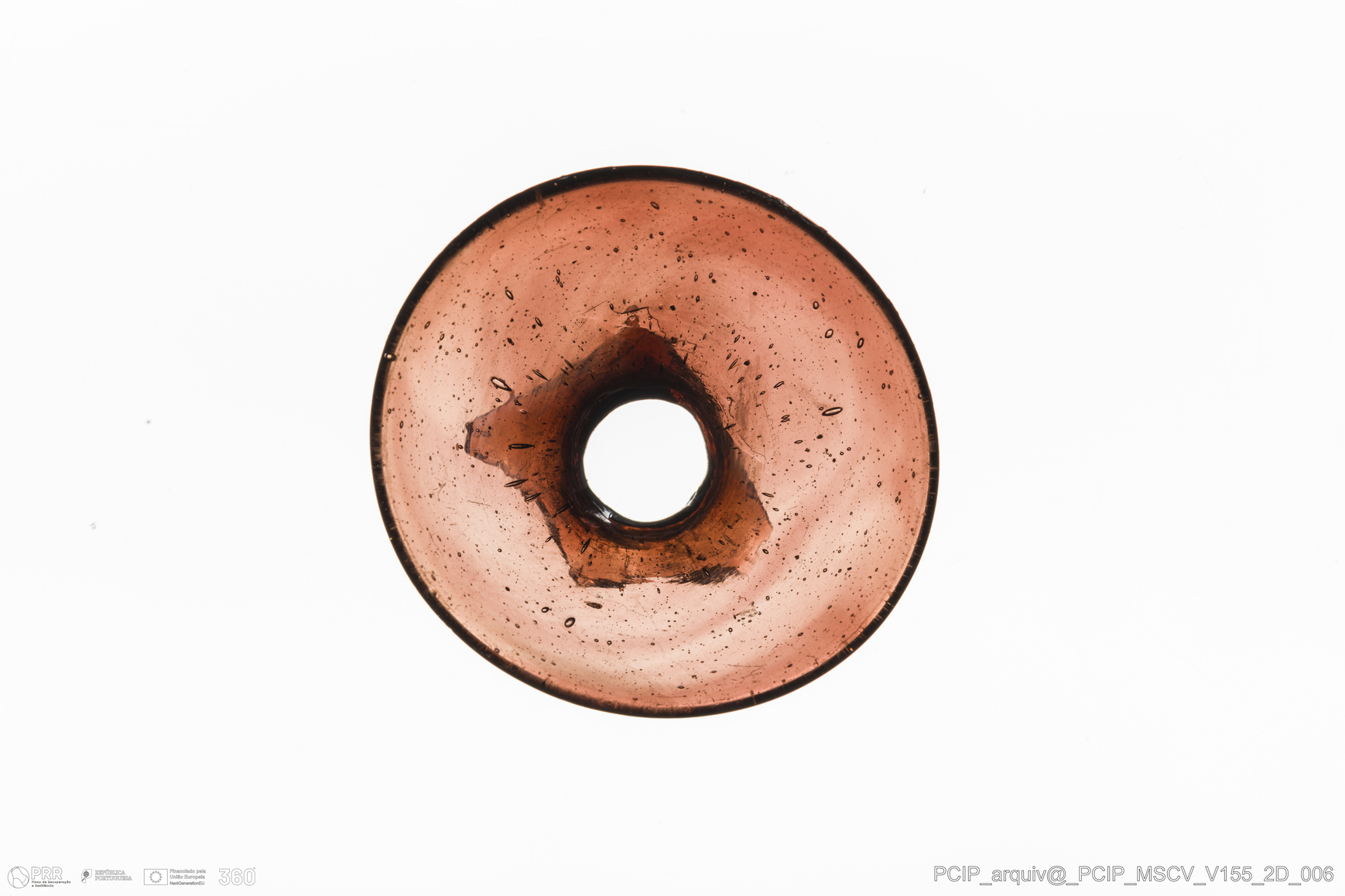 Matéria/Técnica: Vidro; Cronologia: Século XVII; Autoria: Desconhecida; Dimensões: Diâmetro Bordo: 34mm.