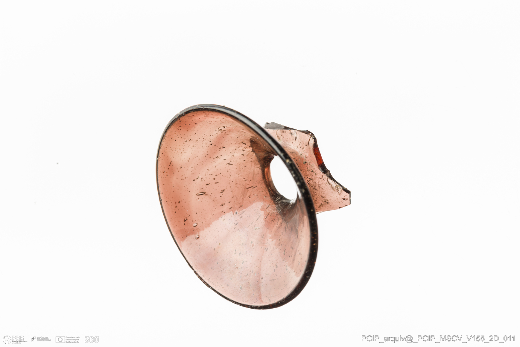 Matéria/Técnica: Vidro; Cronologia: Século XVII; Autoria: Desconhecida; Dimensões: Diâmetro Bordo: 34mm.