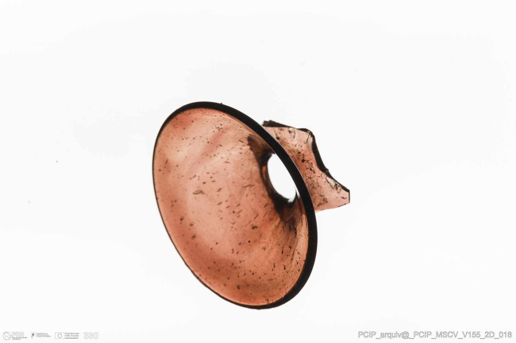 Matéria/Técnica: Vidro; Cronologia: Século XVII; Autoria: Desconhecida; Dimensões: Diâmetro Bordo: 34mm.