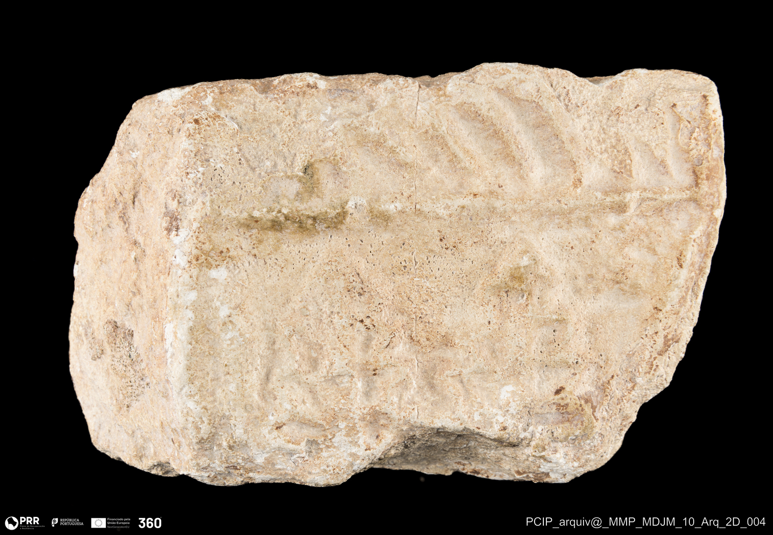 Matéria/Técnica: Pedra calcária; Cronologia: Paleo-Cristã; Autoria: Desconhecida; Dimensões: Altura: 12 cm x Largura: 21,5 cm.