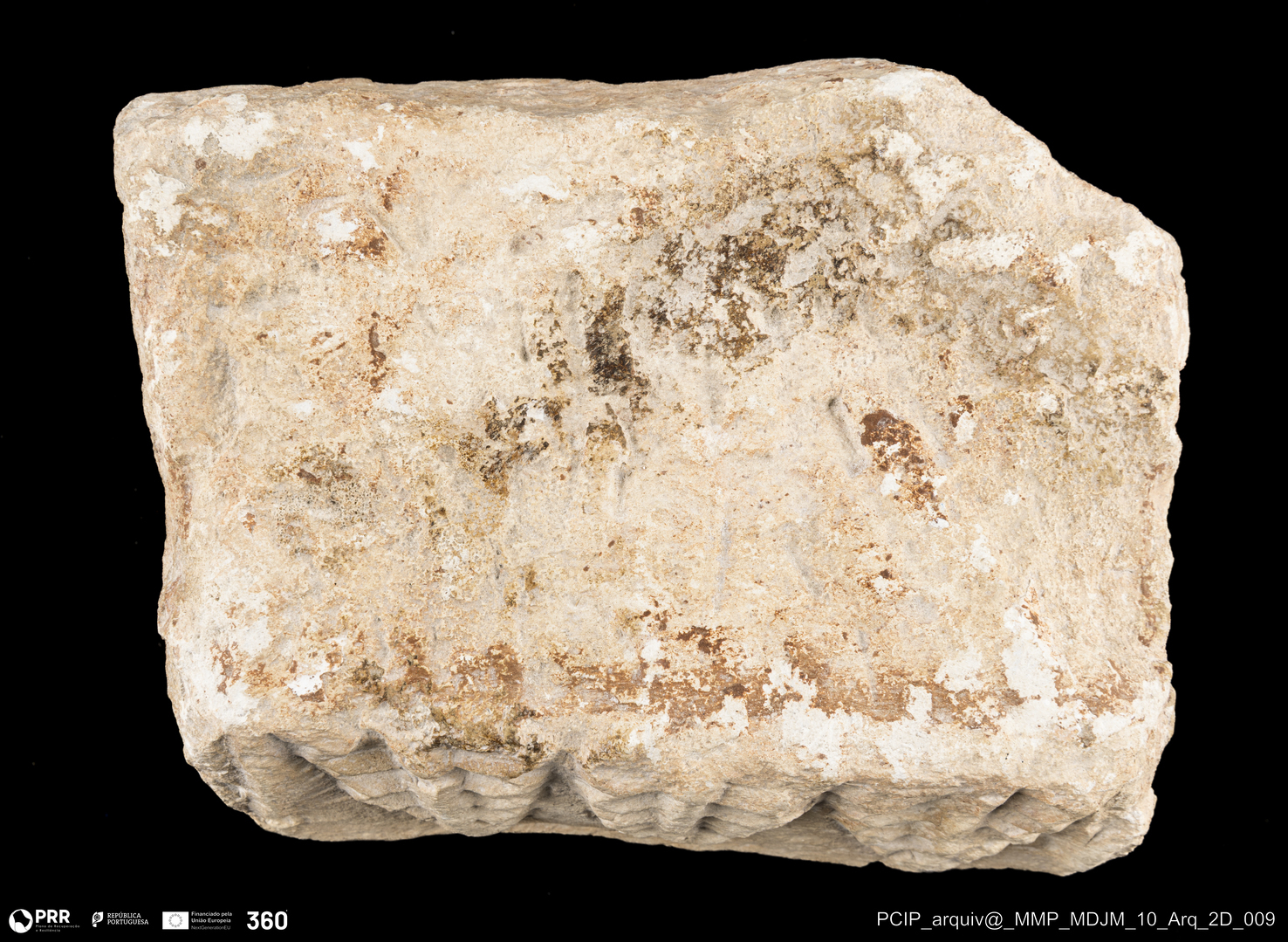 Matéria/Técnica: Pedra calcária; Cronologia: Paleo-Cristã; Autoria: Desconhecida; Dimensões: Altura: 12 cm x Largura: 21,5 cm.