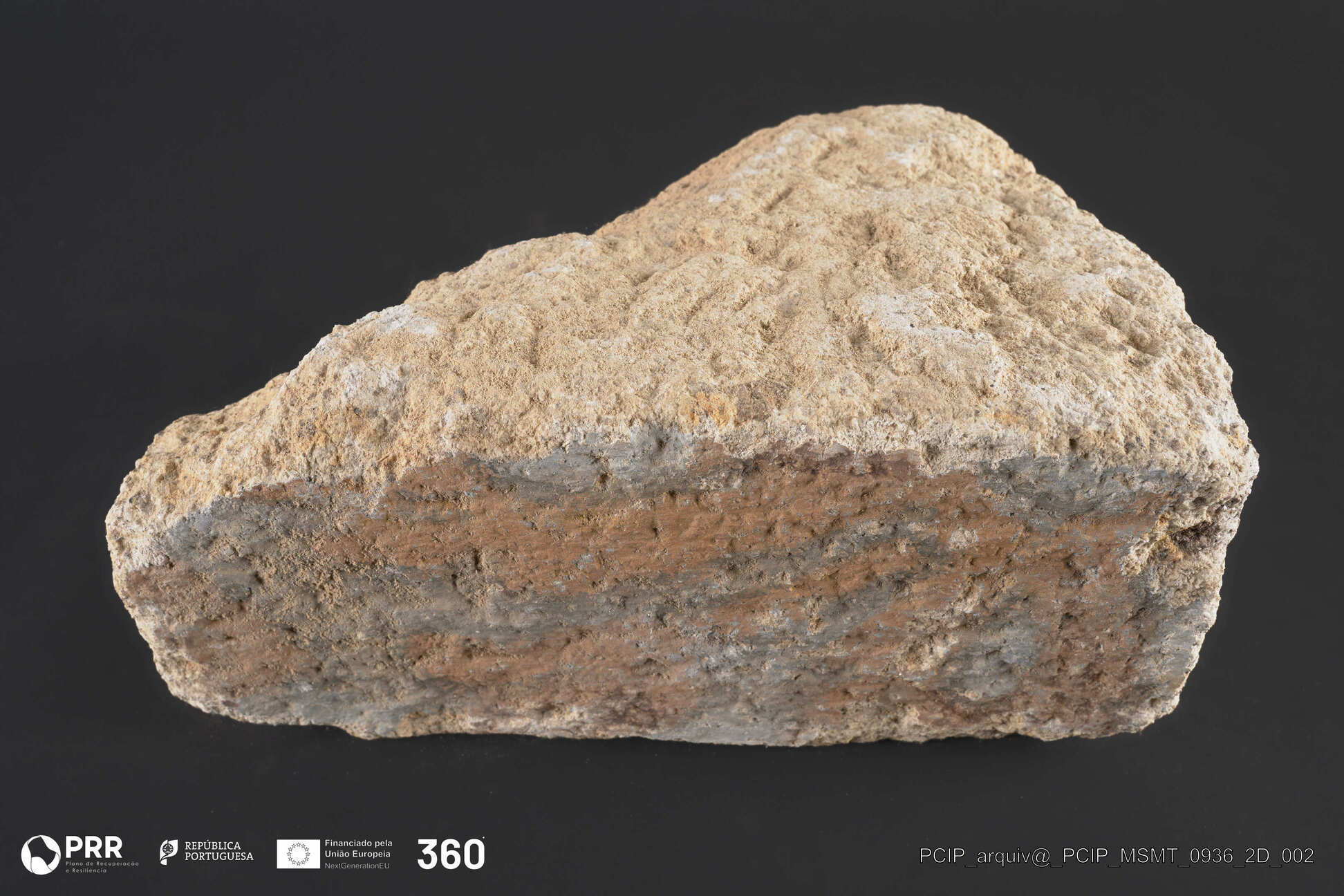 Matéria/Técnica: Granito policromo / Cantaria; Cronologia: Séc. XII/XIII; Autoria: Desconhecido; Dimensões (cm): 15 X 30 X 21.