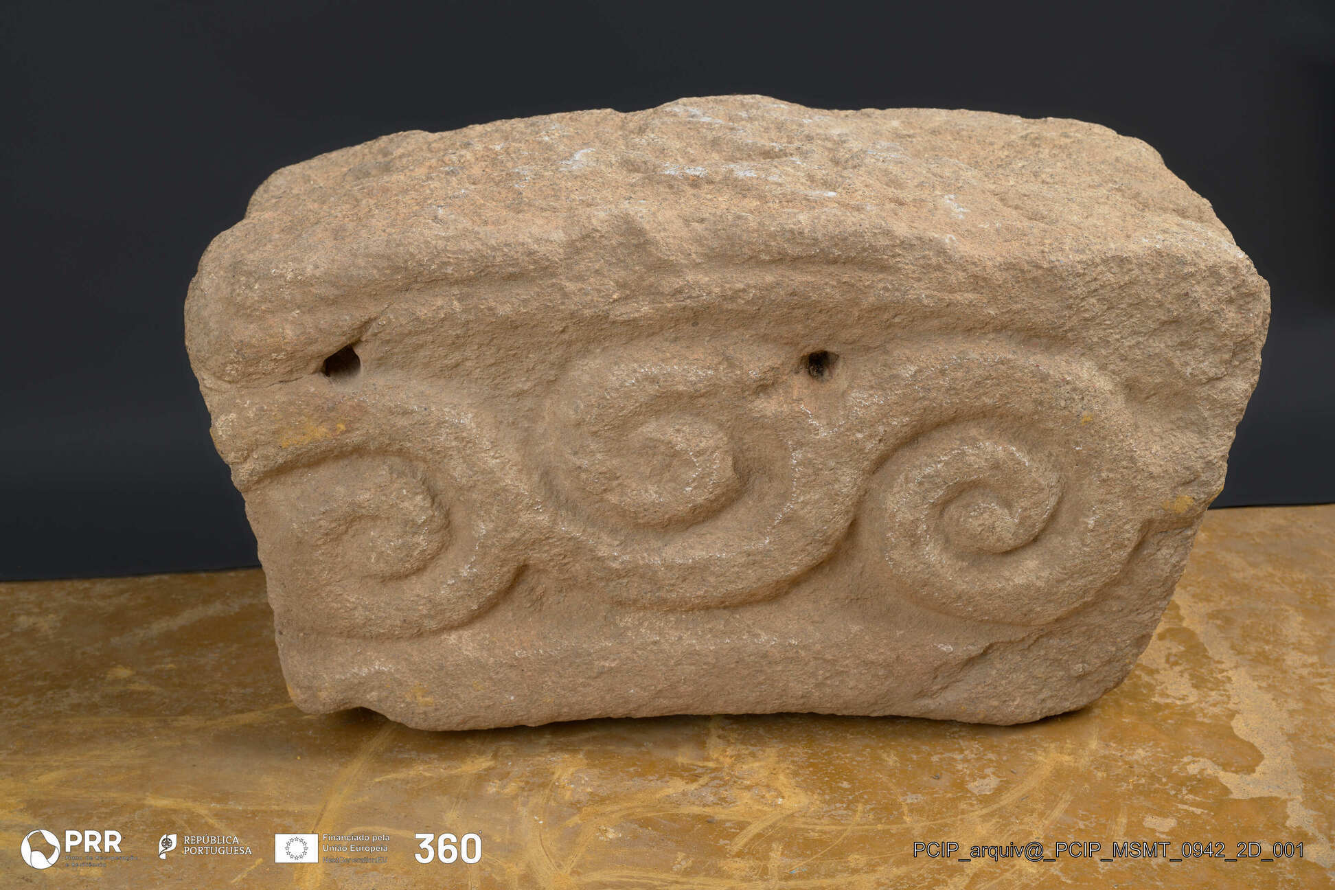 Matéria/Técnica: Granito / Cantaria; Cronologia: Séc. XII/XIII; Autoria: Desconhecido; Dimensões (cm): 31 X 52 X 27.5.