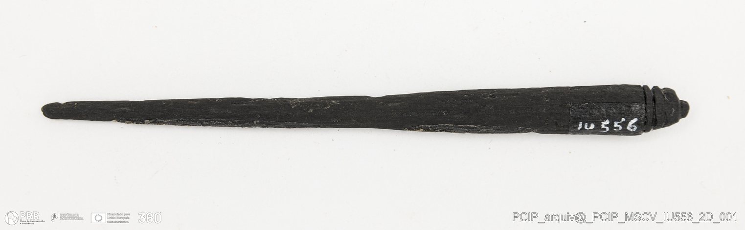 Matéria/Técnica: Madeira; Cronologia: Século XVII; Autoria: Desconhecida; Dimensões: Comprimento: 145mm; Espessura: 12mm.