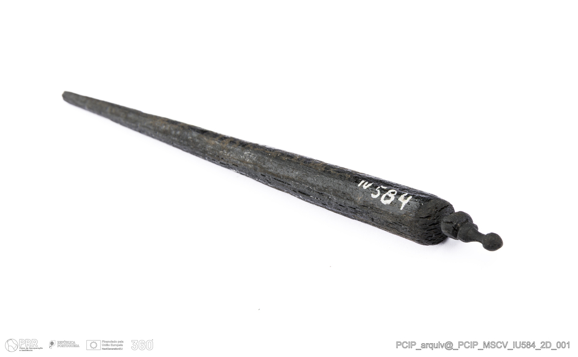 Matéria/Técnica: Madeira; Cronologia: Século XVII; Autoria: Desconhecida; Dimensões: Comprimento: 147mm; Espessura: 10mm.