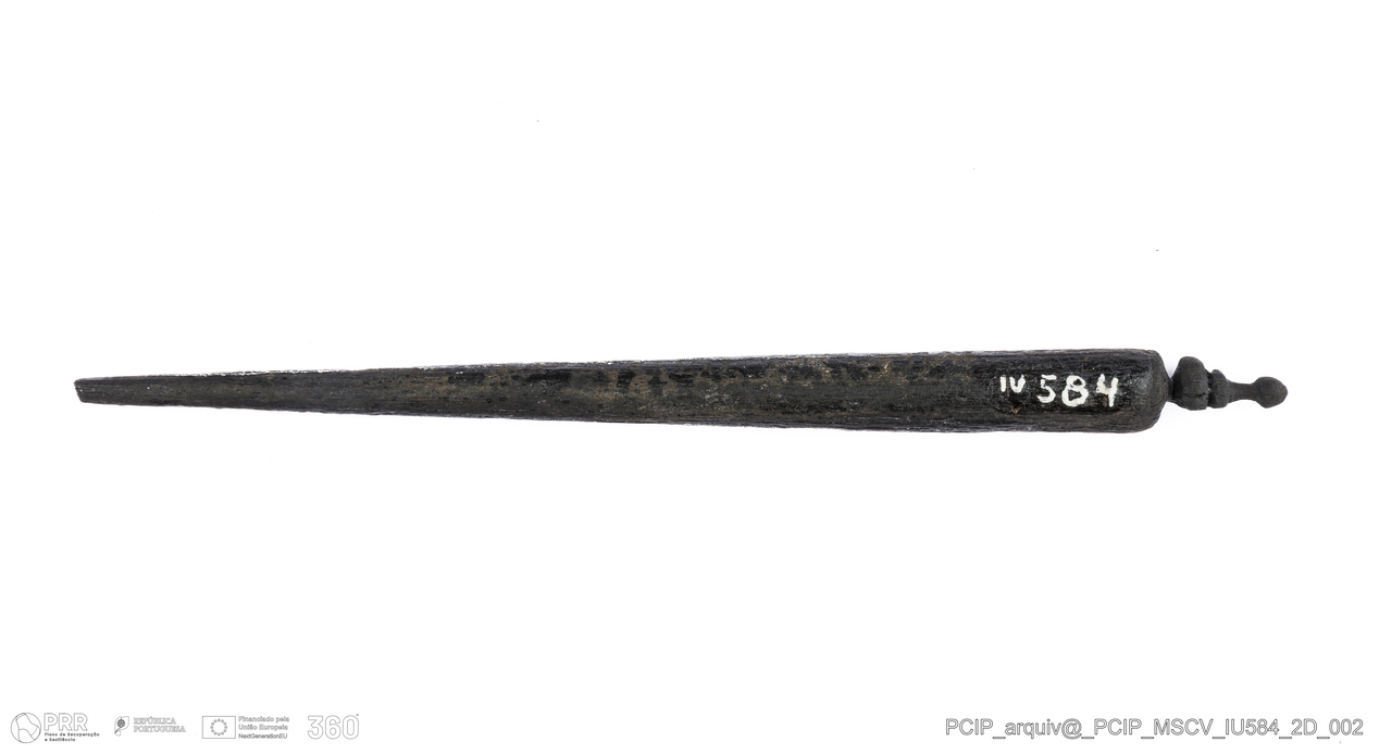 Matéria/Técnica: Madeira; Cronologia: Século XVII; Autoria: Desconhecida; Dimensões: Comprimento: 147mm; Espessura: 10mm.