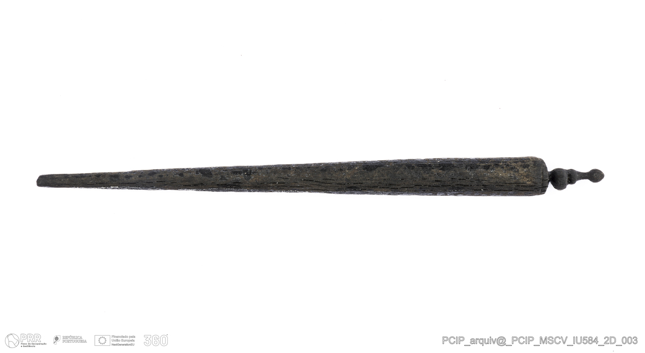 Matéria/Técnica: Madeira; Cronologia: Século XVII; Autoria: Desconhecida; Dimensões: Comprimento: 147mm; Espessura: 10mm.