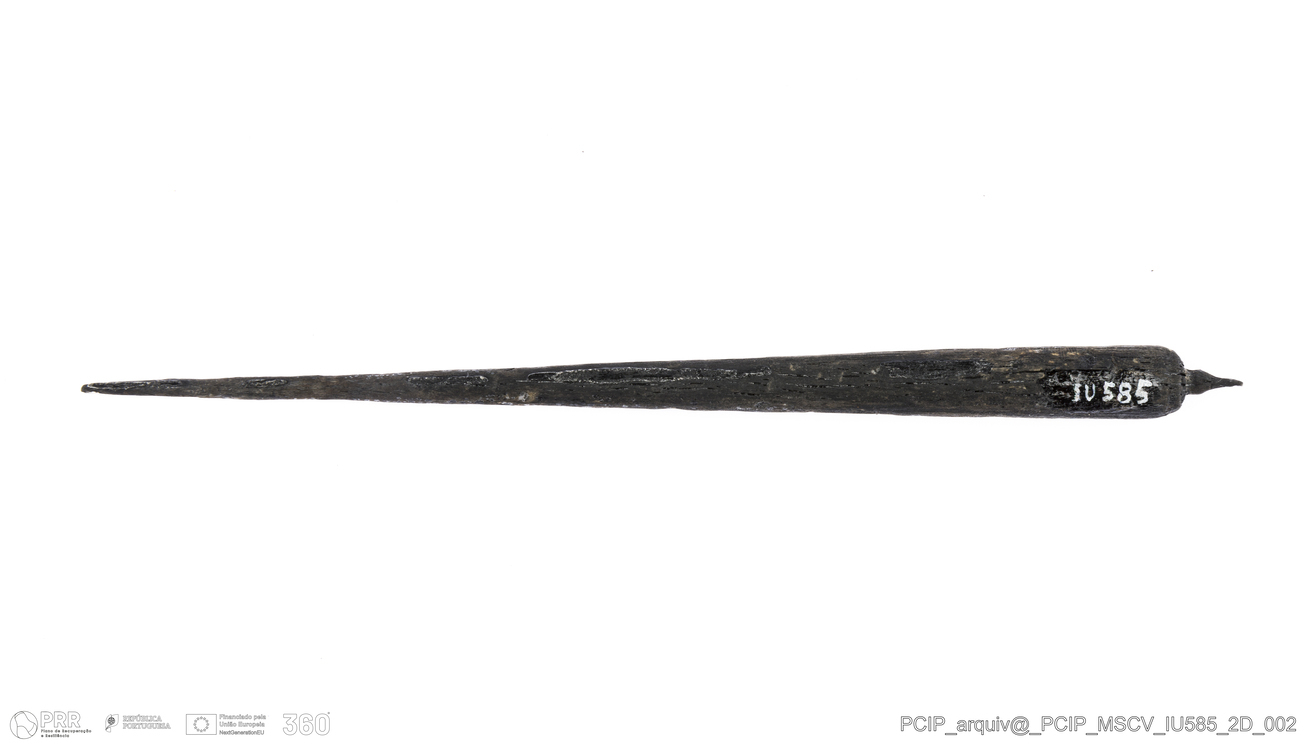 Matéria/Técnica: Madeira; Cronologia: Século XVII; Autoria: Desconhecida; Dimensões: Comprimento: 152mm; Espessura: 10mm.