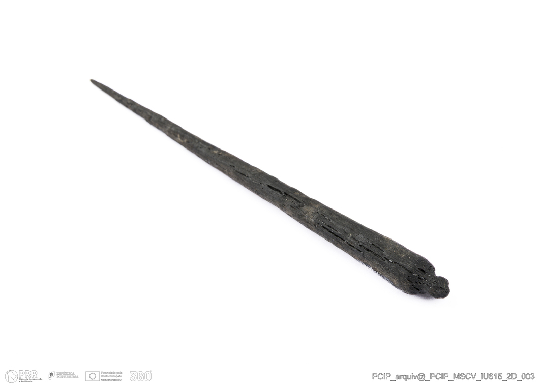 Matéria/Técnica: Madeira; Cronologia: Século XVII; Autoria: Desconhecida; Dimensões: Comprimento: 121mm; Espessura: 7mm.