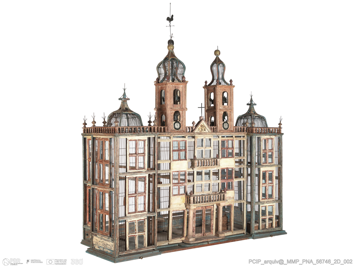 Matéria/Técnica: Madeira, arame, vidro, metal, tintas de cor; Cronologia: 1872; Autoria: Desconhecida; Dimensões (cm): Altura: 135,5; Largura: 62; Comprimento: 148.
