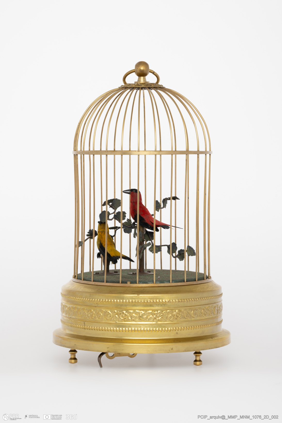 Gaiola Metálica com Pássaros Cantantes