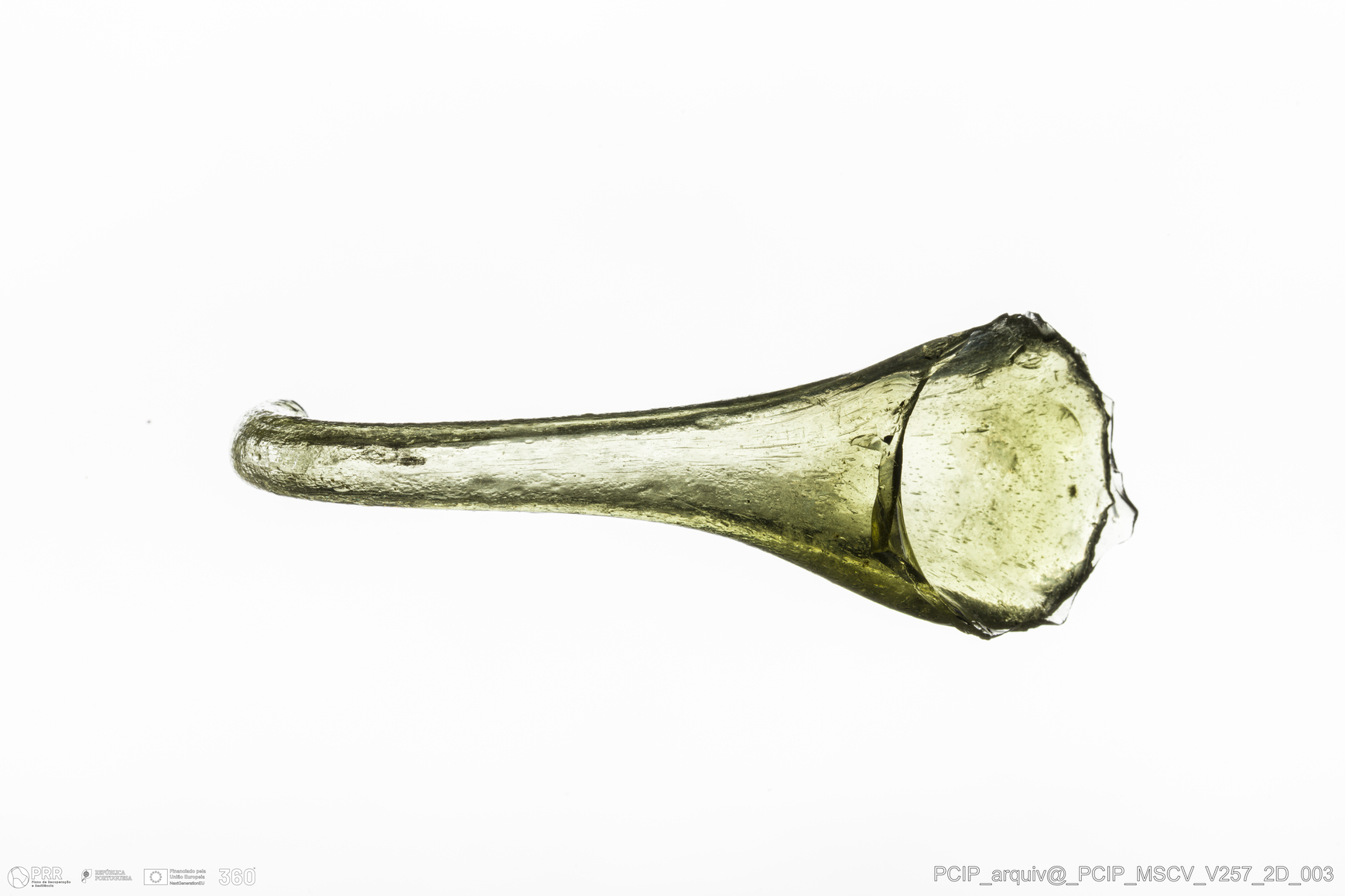 Matéria/Técnica: Vidro; Cronologia: Século XVII; Autoria: Desconhecida; Dimensões: Largura: 34mm; Altura: 96mm.
