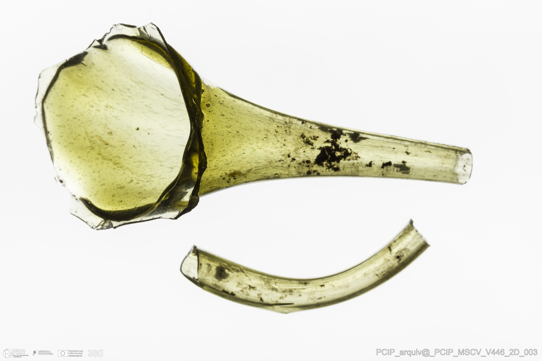 Matéria/Técnica: Vidro; Cronologia: Século XVII; Autoria: Desconhecida; Dimensões: Comprimento: 103mm; Largura: 32mm.