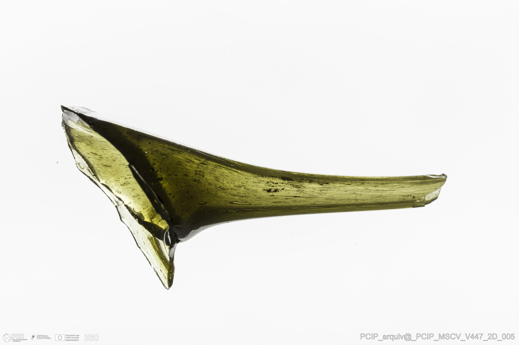 Matéria/Técnica: Vidro; Cronologia: Século XVII; Autoria: Desconhecida; Dimensões: Comprimento: 73mm; Largura: 35mm.