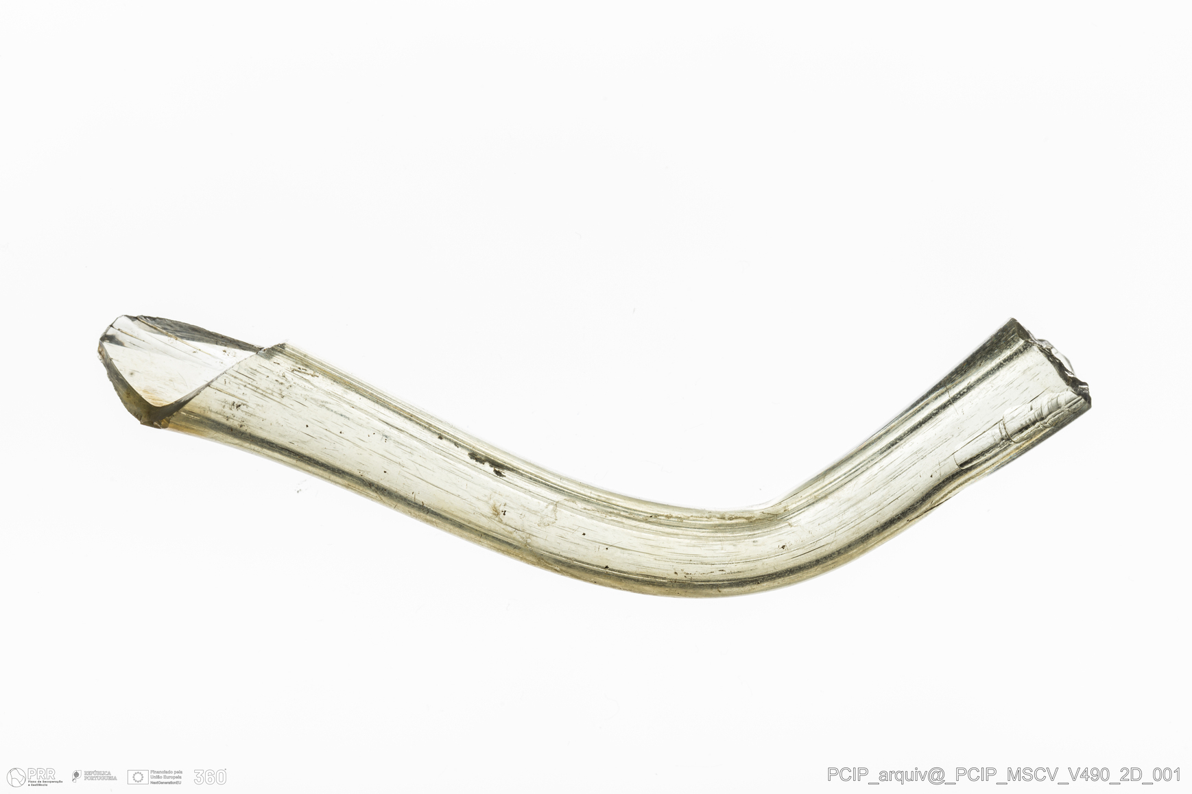 Matéria/Técnica: Vidro; Cronologia: Século XVII; Autoria: Desconhecida; Dimensões: Comprimento: 72mm; Largura: 20mm.