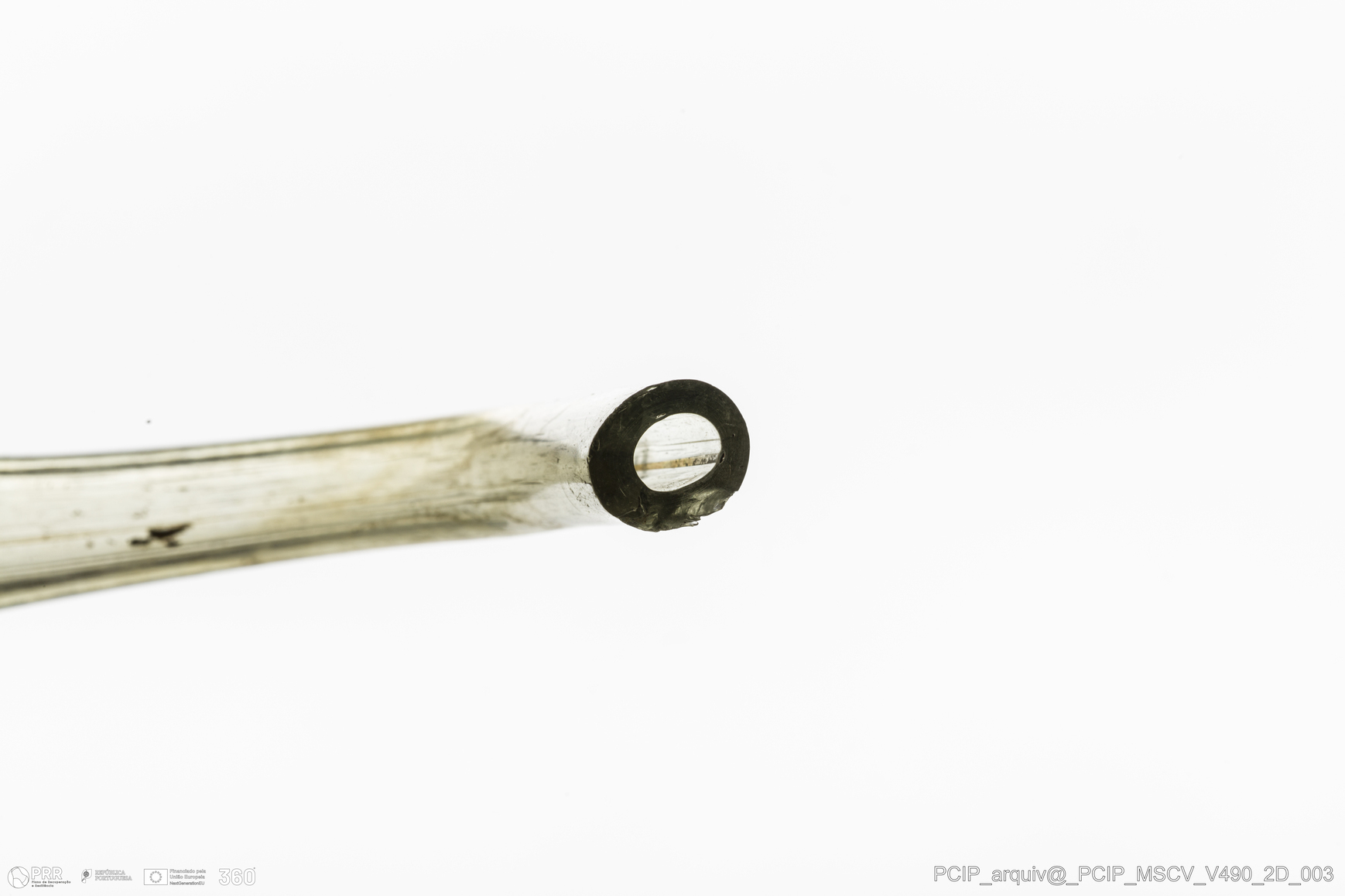 Matéria/Técnica: Vidro; Cronologia: Século XVII; Autoria: Desconhecida; Dimensões: Comprimento: 72mm; Largura: 20mm.