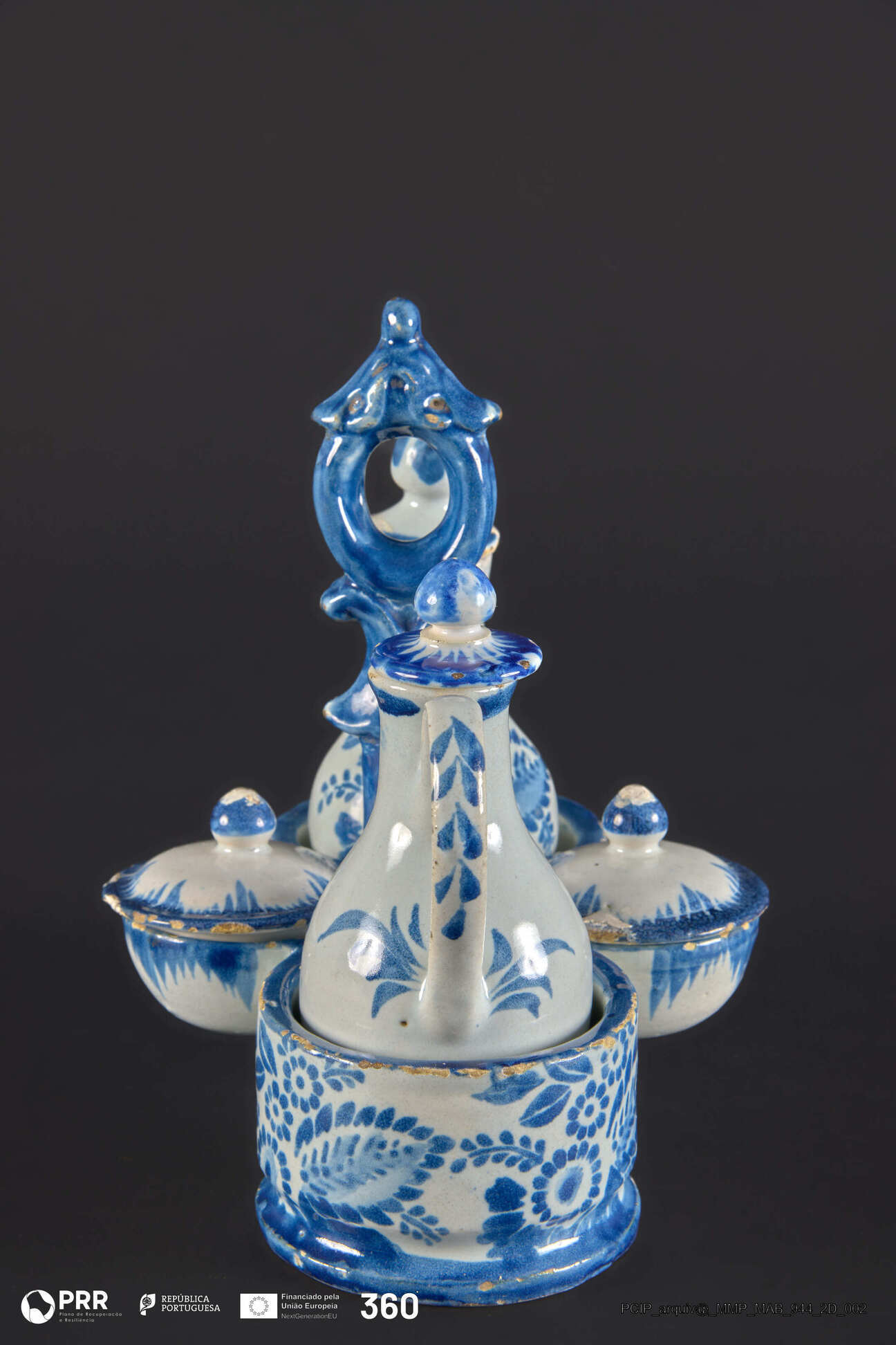 Matéria/Técnica: Faiança rodada, moldada e vidrada com decoração a azul sobre fundo branco; Cronologia: Desconhecida; Autoria: Desconhecida; Dimensões: Desconhecidas.