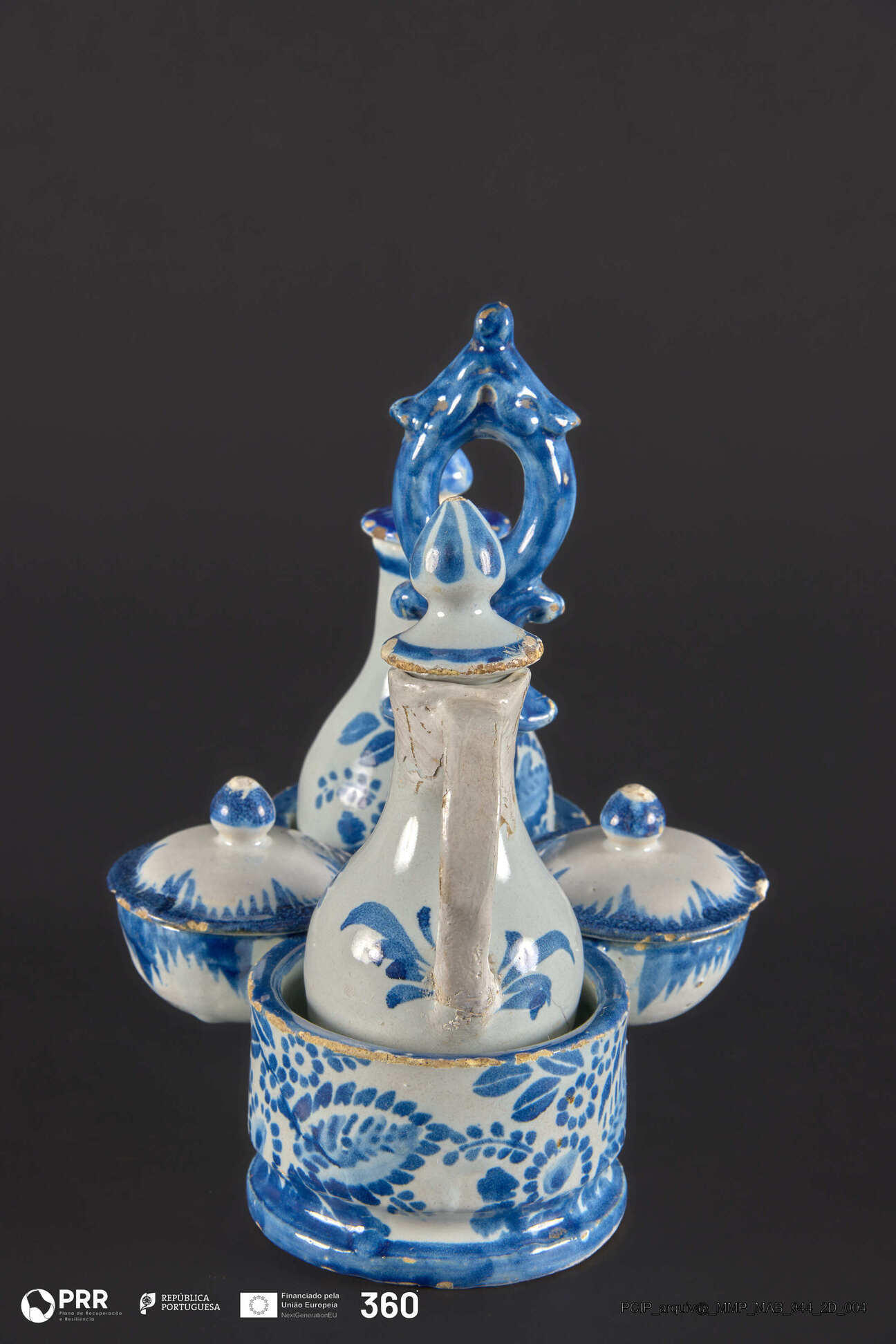 Matéria/Técnica: Faiança rodada, moldada e vidrada com decoração a azul sobre fundo branco; Cronologia: Desconhecida; Autoria: Desconhecida; Dimensões: Desconhecidas.