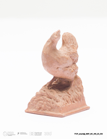 Matéria/Técnica: Terracota modelada. Monocozedura; Cronologia: 1908; Autoria: Francisco Elias / Caldas da Rainha, Portugal; Dimensões (cm): Altura: 3; Largura: 3,5; Comprimento: 3.