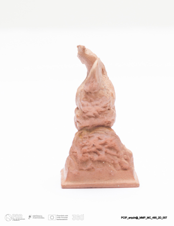 Matéria/Técnica: Terracota modelada. Monocozedura; Cronologia: 1908; Autoria: Francisco Elias / Caldas da Rainha, Portugal; Dimensões (cm): Altura: 3; Largura: 3,5; Comprimento: 3.
