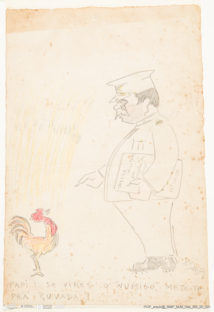 Documento simples. MJM_Des_250_2D_001 - Galo e figura de oficial de perfil