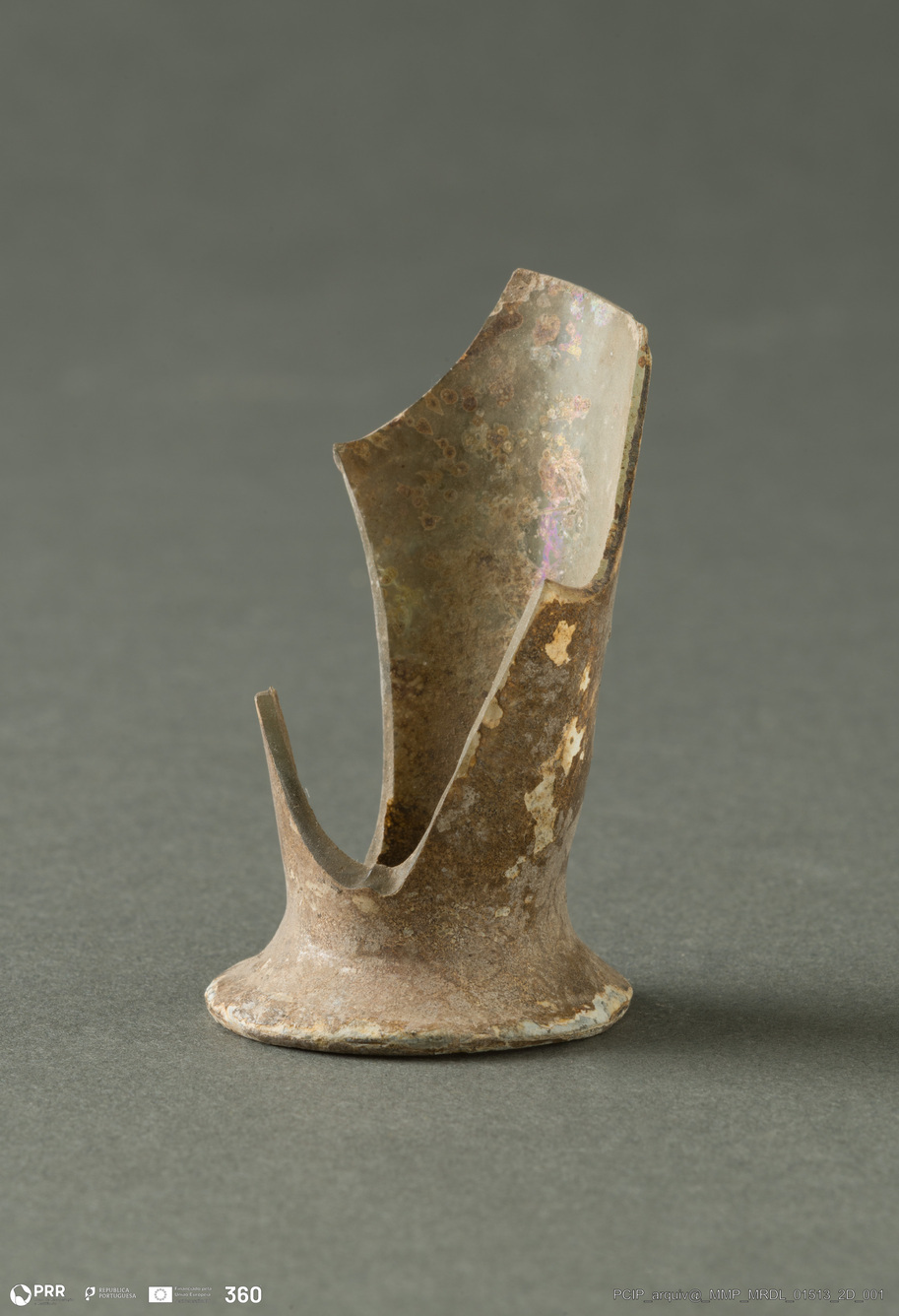 Matéria/Técnica: Vidro; Cronologia: Desconhecida; Autoria: Desconhecida; Dimensões: Diâmetro: 3,40 cm; Comprimento: 5,70 cm.