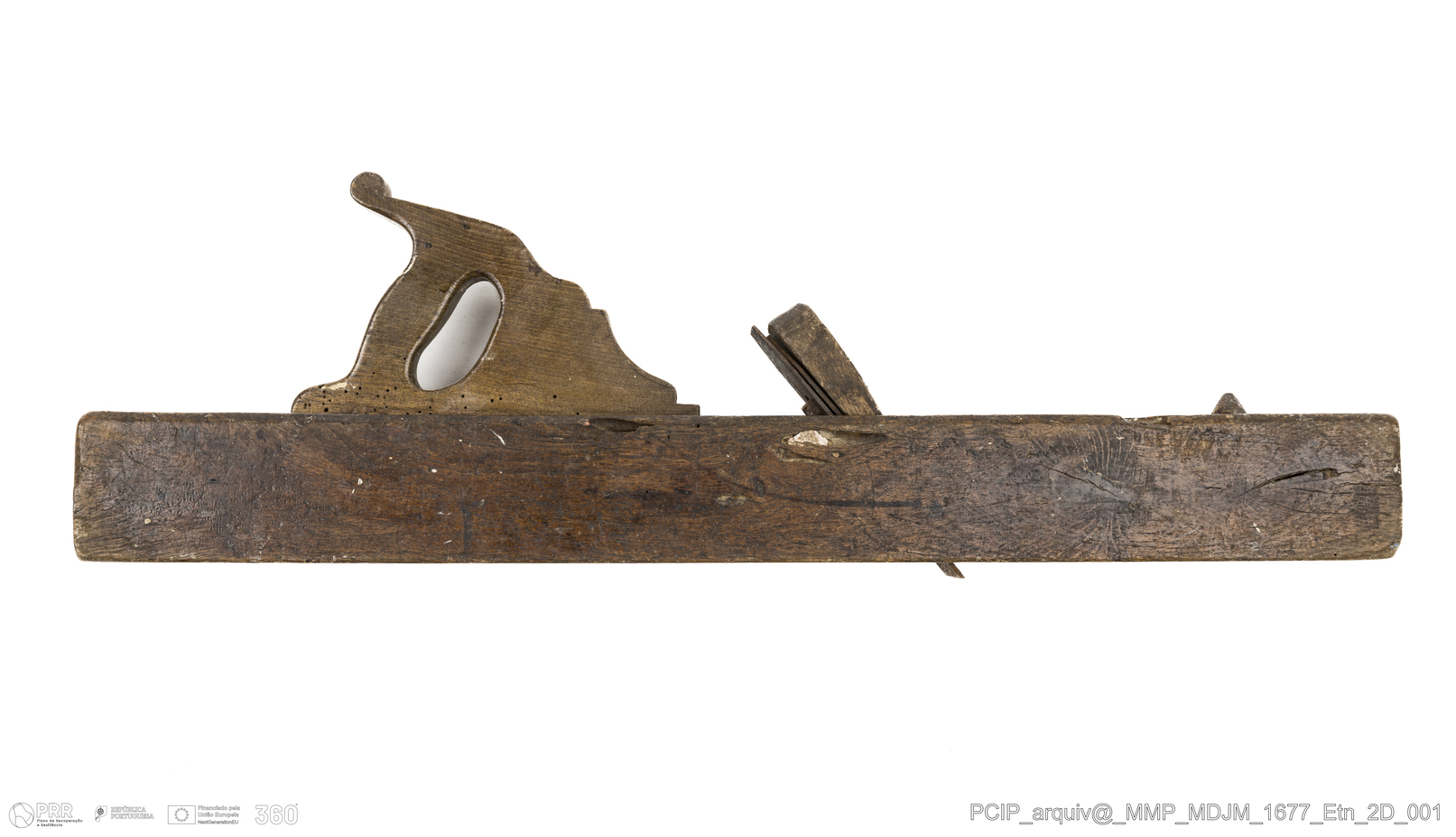 Matéria/Técnica: Madeira; Cronologia: Séc. XX; Autoria: Desconhecida; Dimensões: Altura: 5,5 cm x Largura: 32 cm x Comprimento: 16,5 cm.
